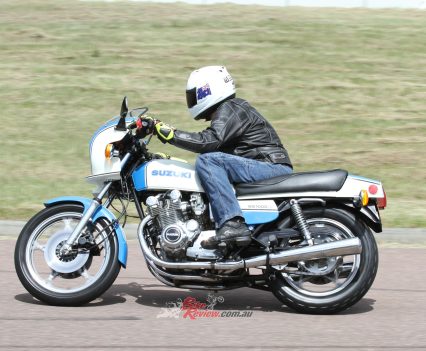 First of all, the GS is not for the faint of heart or inexperienced as at over 220kg dry, it is a heavy beast. However, once on the go the weight falls away. The seat is low, wide, and soft by today’s standards but was sporty in 1979. The tank is long but narrower between the knees than it looks, while the ‘bars feel slightly lower and are a sportier almost flat bend.