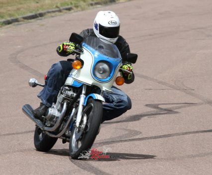Yep, it wallowed, it weaved, it kicked back, and it bottomed out but man, it made me feel alive and it let me know where it was at, with no hint of spitting me into the bushes without warning. Not like a modern, rigid, superbike… The brakes, however, take a lot to get used to, they are of course below par even by 1979 standards and need a mega squeeze! They work if all three are used and a heap of engine braking, but it is all part of the fun.