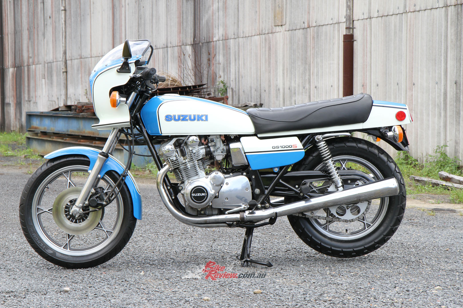 This unrestored showroom condition 1979 GS1000S belongs to Luis Gallur, a local collector here in Sydney who has over 100 bikes.
