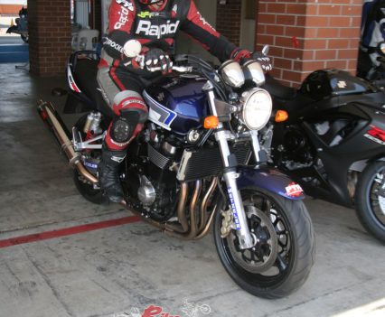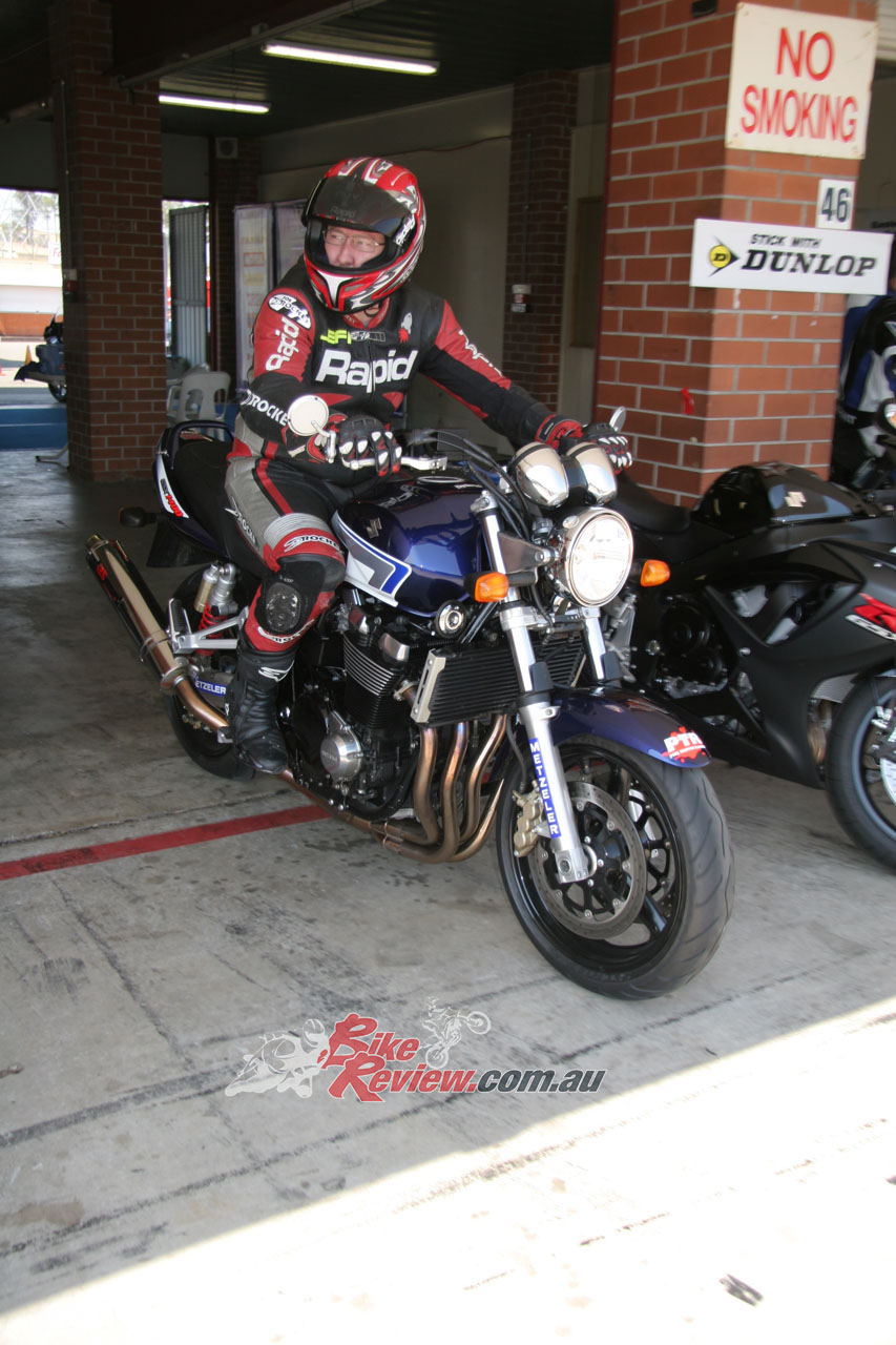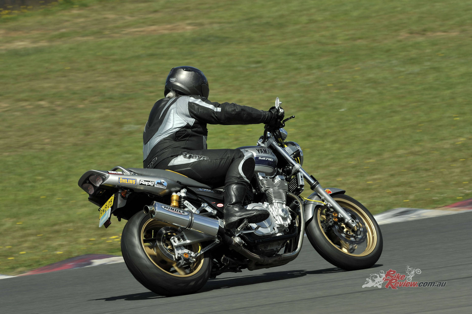 Mick Withers testing the XJR1300 at SMSP, it is a great track day bike at a medium pace once set up, and comfy on the ride there and back!