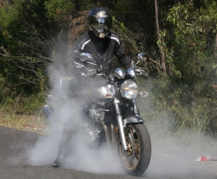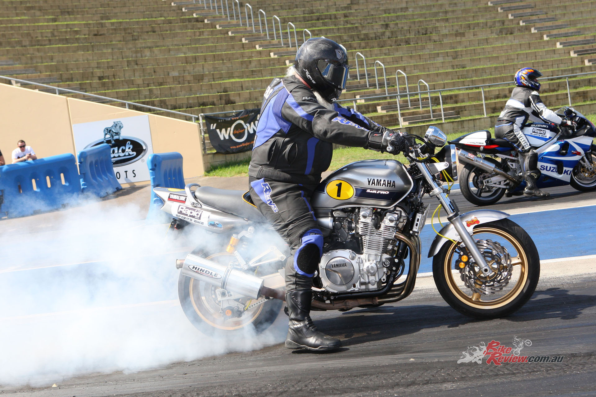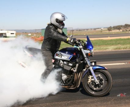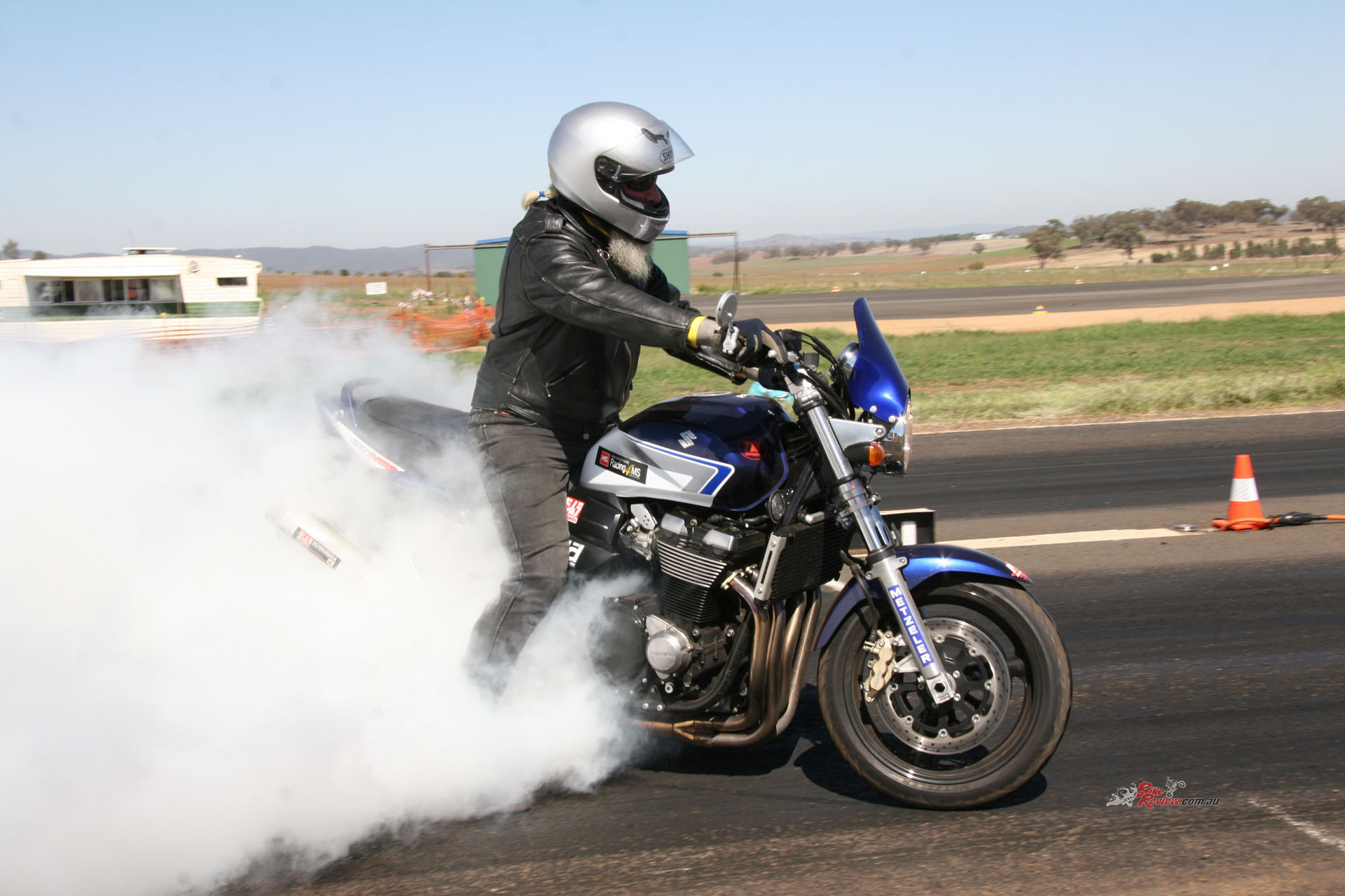 Pommie warming up the rear tyre. Or was it a slip of the wrist? Either way, getting the tyres smoking wasn’t hard.
