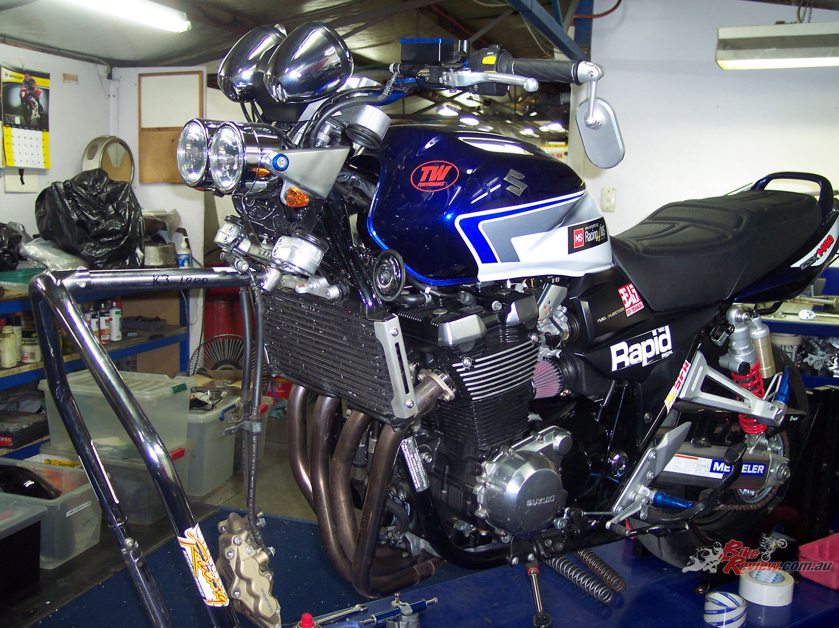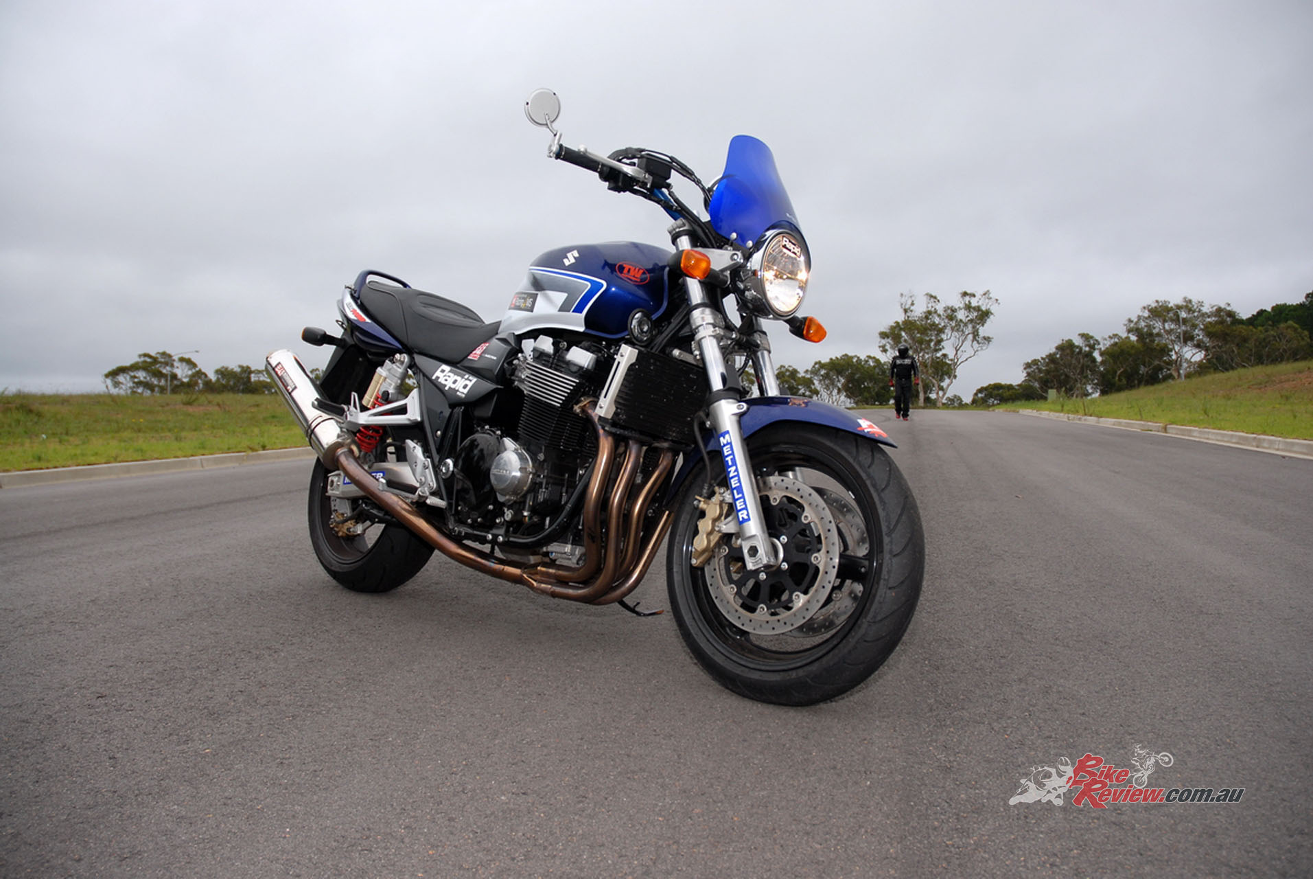 With Suzuki Australia I built a weapon GSX1400 we called Mr Muscle, in 2006. It had 60 per cent more power and torque than standard, a 1620cc big bore kit, Yoshimura camshafts and exhaust system, PTR ported and flowed cylinder-head, pod airfilters, a Power Commander, PTR airbox, upped compression and lots more. It would power wheelie up to third!