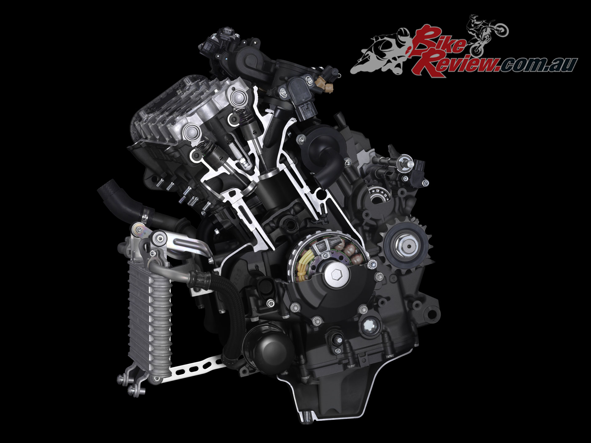 Engine: Liquid-cooled, four-stroke, crossplane forward-inclined parallel four-cylinder, four-valve per cylinder, DOHC, 79 x 50.8mm bore x stroke, 998cc, 13.0:1 compression, banking sensitive TCS/SCS, LIF, LCS, QSS, PWR power modes, YCC-I, YCC-T, six-axis IMU, (CCU), magnesium oil pan, titanium four-into-two-into-one exhaust
