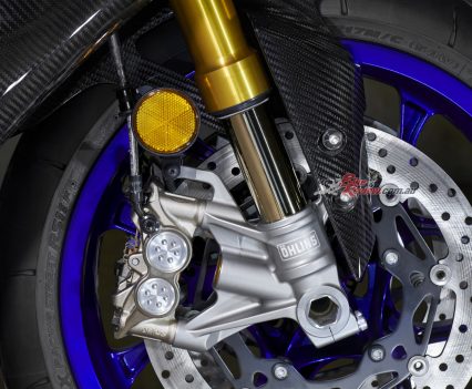 Premium Öhlins Electronic Racing Suspension (ERS) has been a staple of the R1M’s chassis performance, and a new NPX pressurised front fork with a gas cylinder built into the front fork axle bracket, along with revised rear shock settings to complement the performance of the front fork, are features of the new 2020 model. With rider adjustability options through YRC settings and Y-TRAC, the new Öhlins ERS suspension package takes the R1M to the next level of performance.