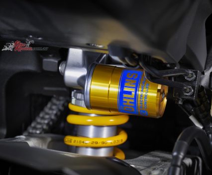 Suspension: 43mm KYB fully adjustable telescopic forks, KYB rear shock, (Ohlins Electronic Racing Suspension forks and rear shock)