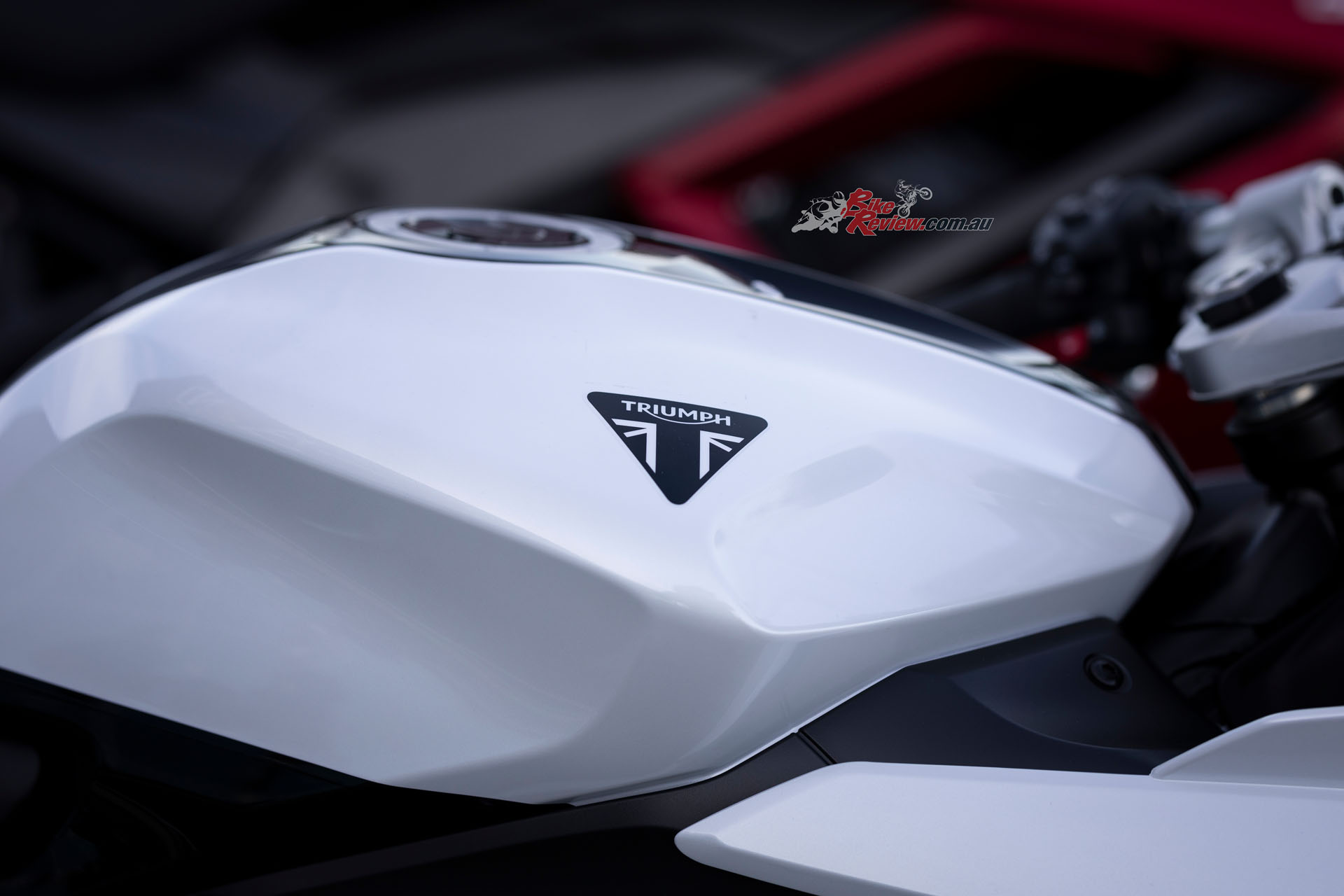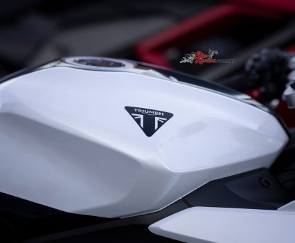 The two models are identical to look at; both have the same bodywork, wheels, suspension, brakes and cosmetics. We couldn’t tell them apart aside from a sticker on the top of the left fork tube to help us identify which was a LAMS or Full Power model. The sticker was only put on by the local dealer for identification, there is nothing from Triumph to identify which is which. Both the Full Power and the LAMS versions come in the same three colours as well, Carnival Red, Snowdonia White, Satin Granite.