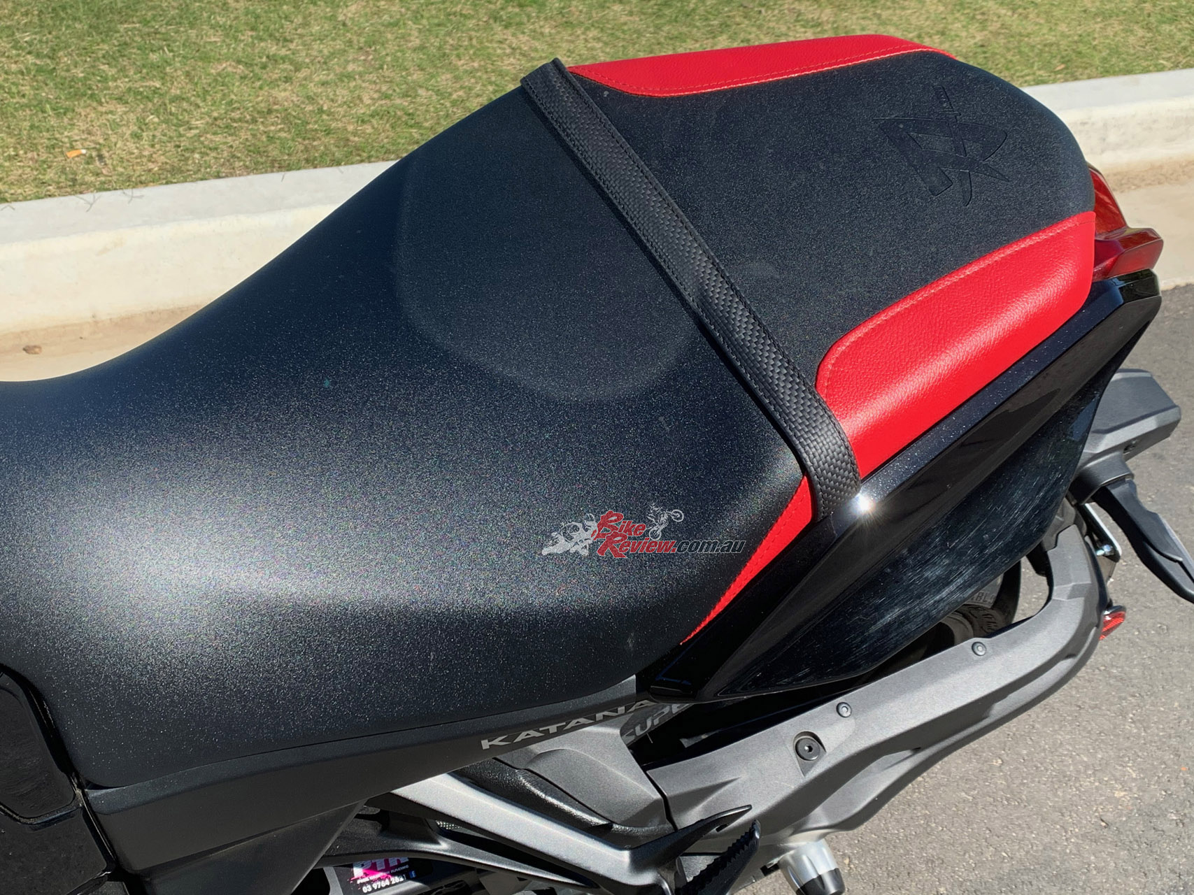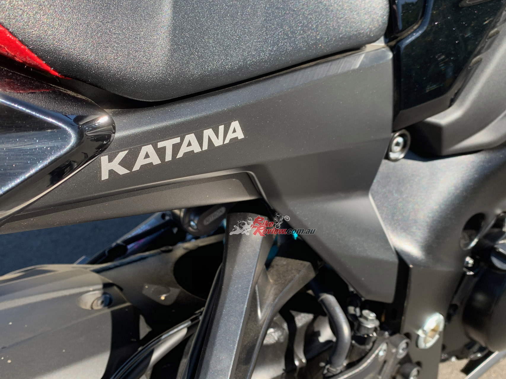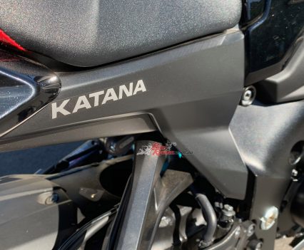 The KATANA tribute LCD instrument cluster is packed with features. It includes speedo, tacho, odo, dual trip meters, gear position, water temperature, range, fuel consumption average and instant, traction control mode and fuel gauge – plus a clock.The KATANA also features a one-press starter button (no need to hold it down) and you don’t have to hold the clutch in to start the bike.