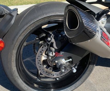 The ABS control unit is supplied by Bosch and weighs just 640 grams. It monitors front and rear wheel speed 50-times per wheel rotation and matches stopping power to available traction. I tested the system purposely in many conditions and found it good enough but there is no cornering ABS.