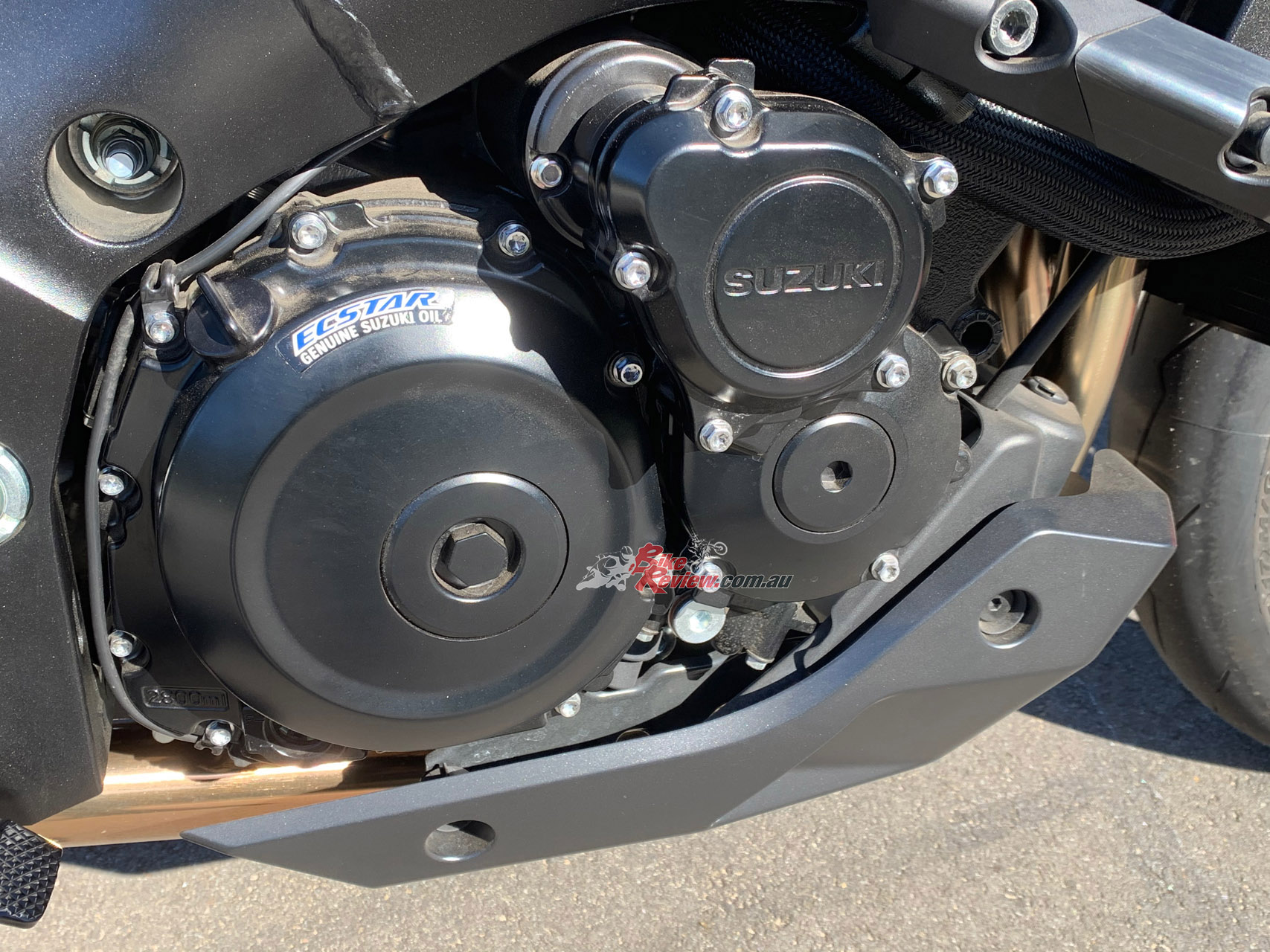 - K5 GSX-R1000 derived highly modified long-stroke engine, 73.4mm bore and 59.0mm stroke, as found on current GSX-S1000 models