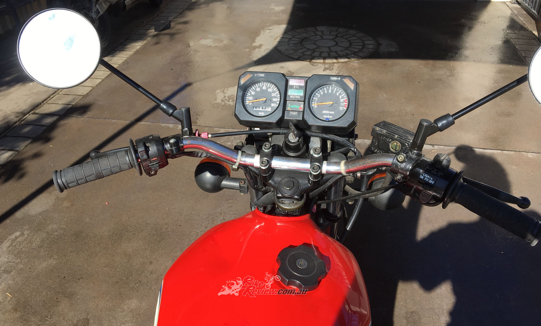 Turns out the owner was South African, and the bike was a South African import. It was so cute. Red and white, proper Yamaha racing colours, with all the curves and features of the 250 and 350, right down to the alloy wheels. I had to have it and $1600 late I was riding home from Lane Cove to Arncliffe on a freezing night on the peakiest bike I’d ever ridden, with Heather following me in the car. I had a huge grin on my face. It was the start of a 20-year love affair with the little rocket…