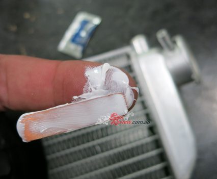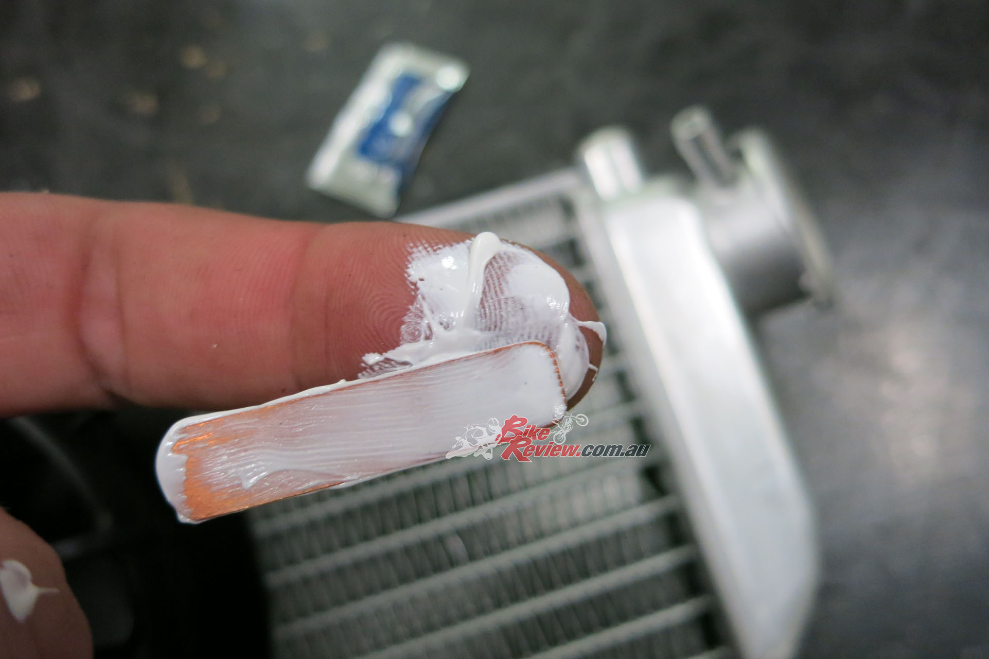 Thermal paste is applied to the temperature sensor. The sensor then slots into the radiator between the fans.