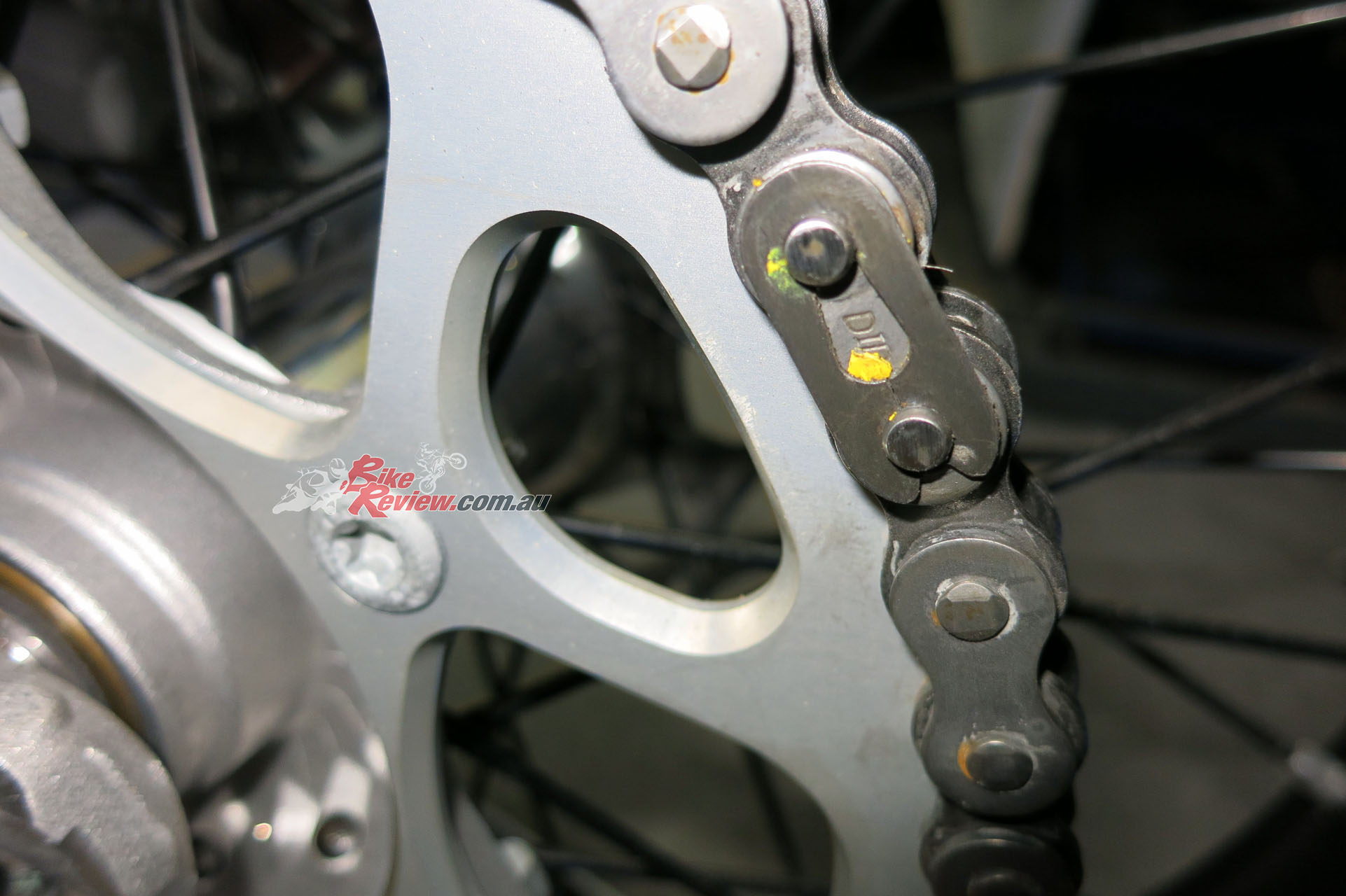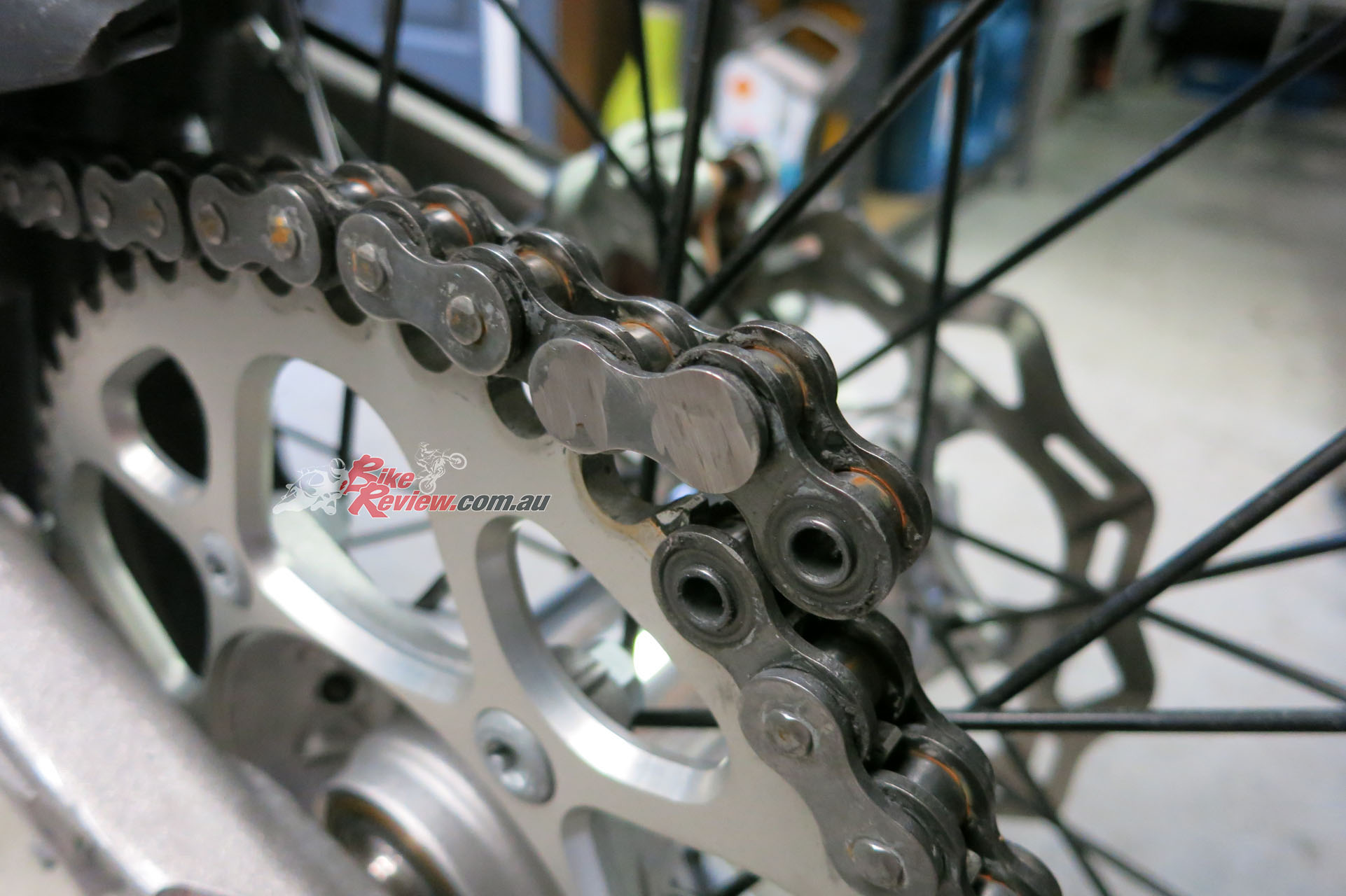 We removed a few links from the chain, as the rear axle was already at maximum wheelbase from new. This is most likely due to gearing changes pre delivery as the model may be geared up for ADR purposes.