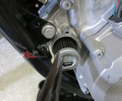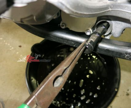 The first job was to give the bike a first service. This involved changing the oil and filter, cleaning the oil strainer filter, checking and gapping the spark plug, adjusting the idle, cleaning the quick-access airfilter, checking the battery terminals and going over the chassis; re-torque major fasteners including engine mounts, swingarm pivot, shock bolts, axles, caliper bolts… also checking and adjusting the spokes and tyre pressures.