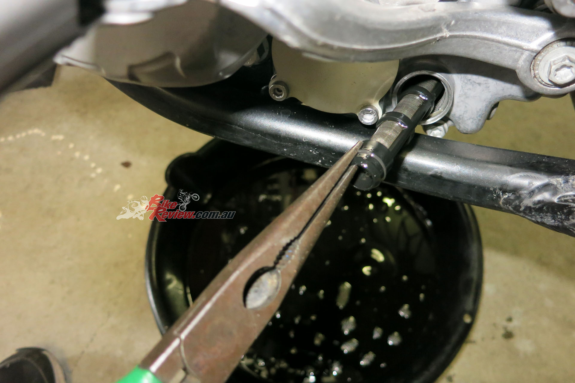 As mentioned, these engine’s only hold 1L of oil and so the oil works extremely hard. The first change was at 1hr, then it should be changed a minimum of every 15 hours but sensible judgement is the best option, if the bike is being ridden hard, bring that back. Experience is the best judge but we are going to change the oil every 10 hours of use.