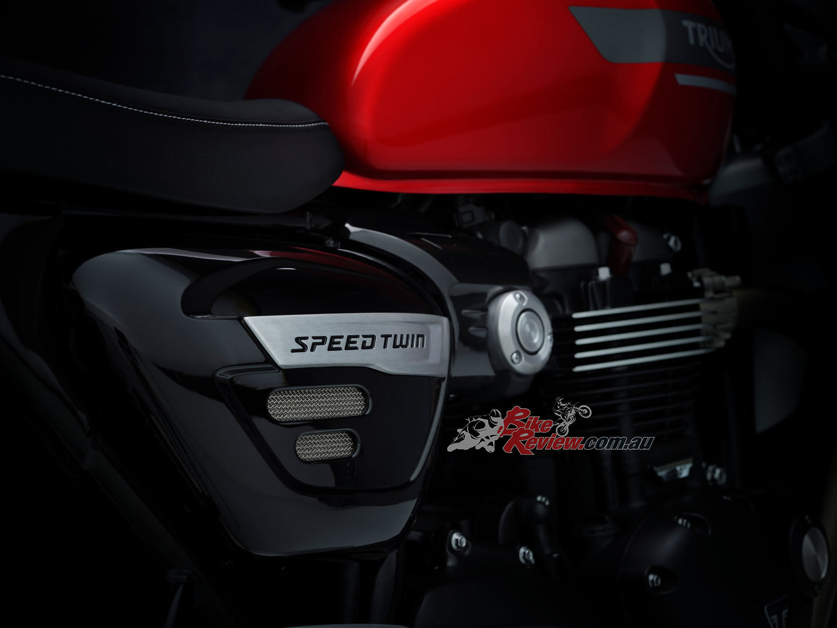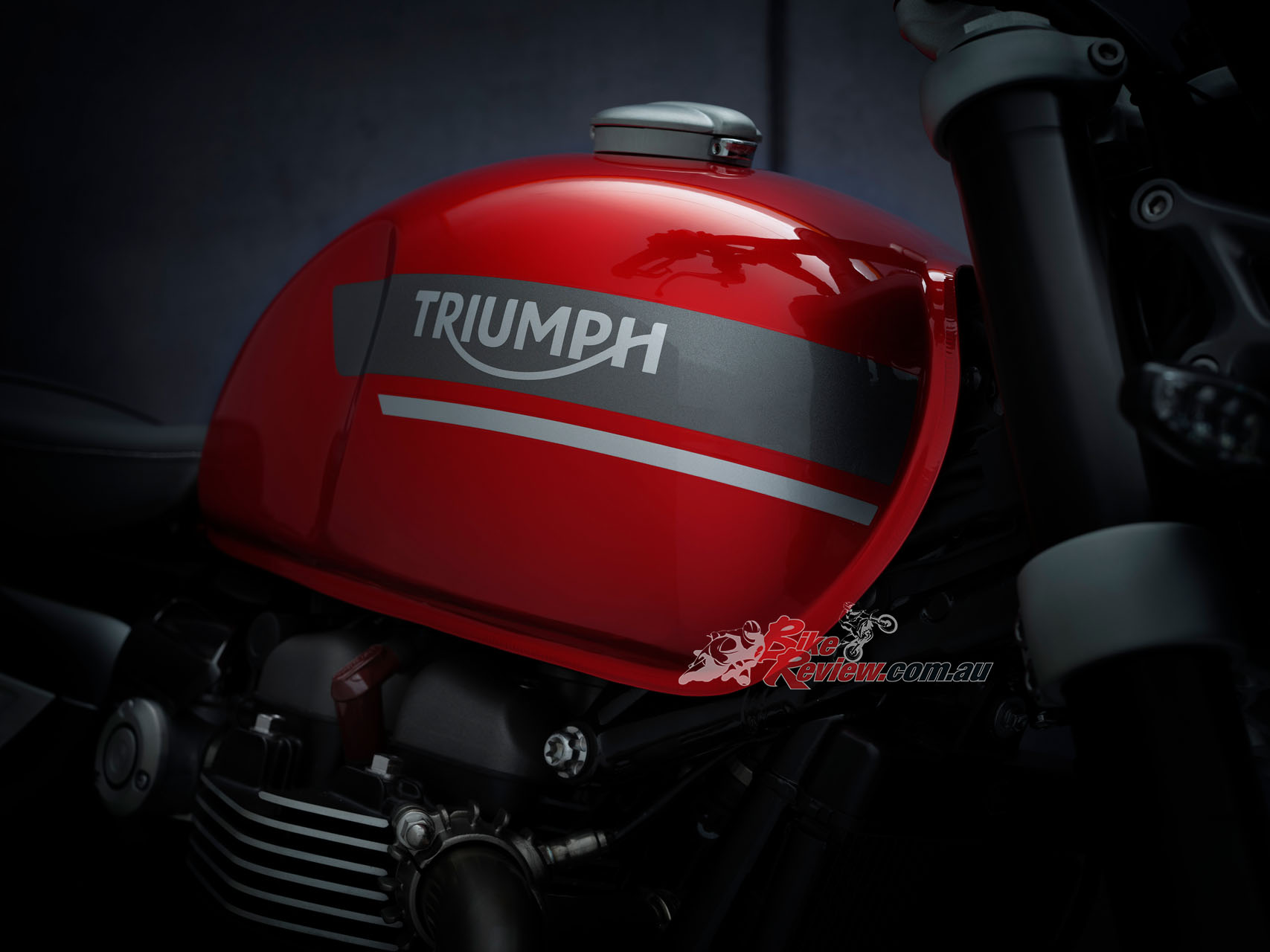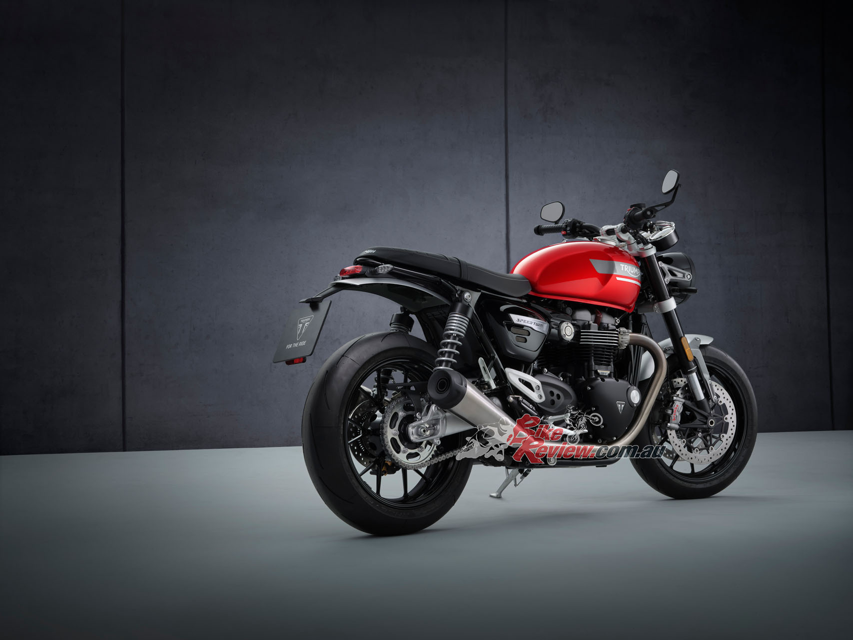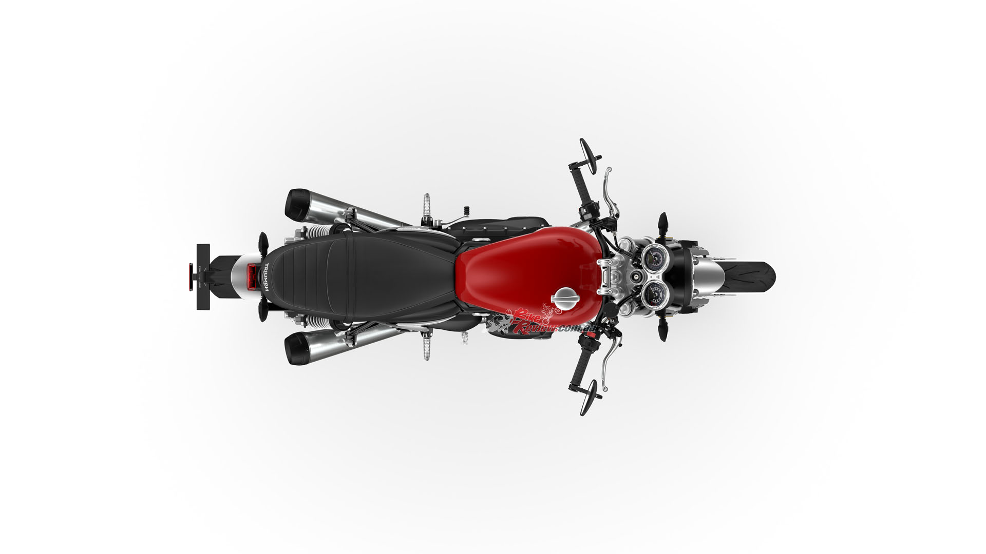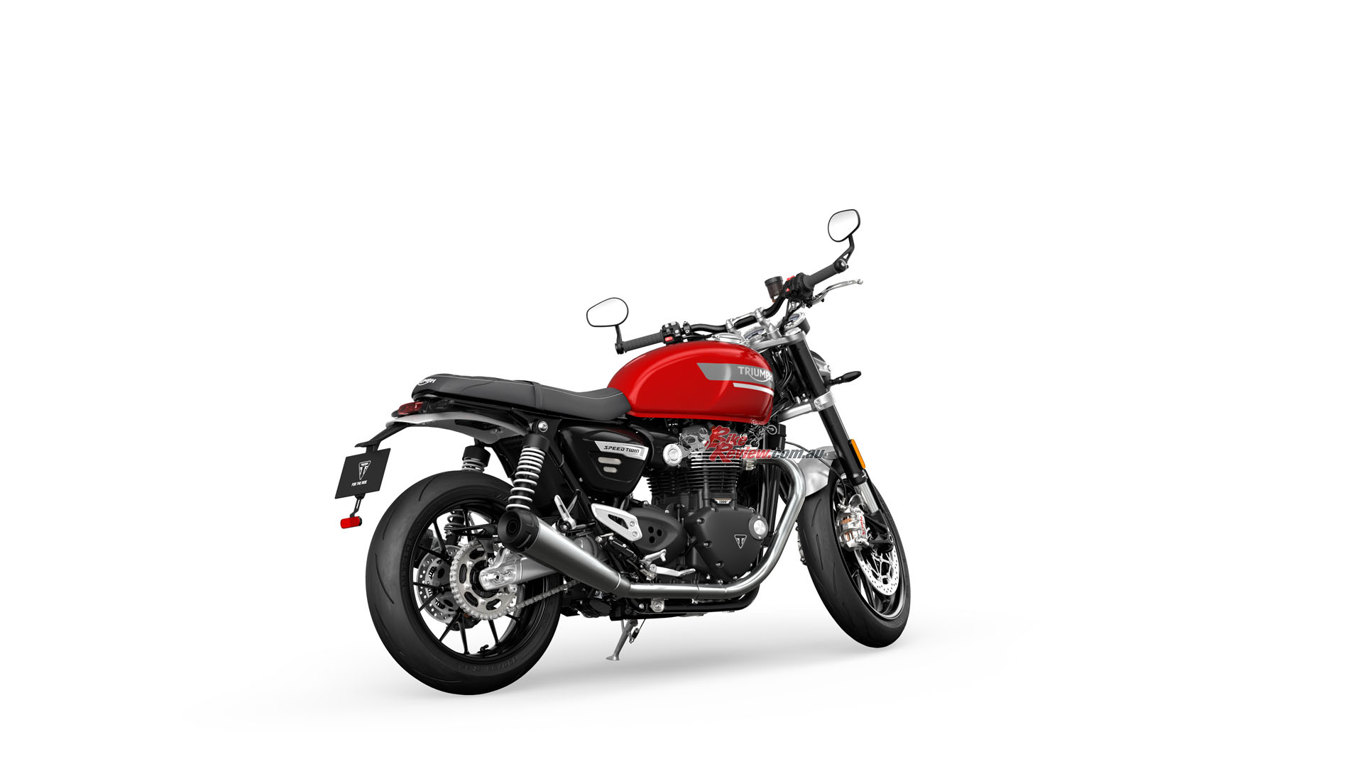 In addition to the new 12 spoke cast wheels and twin upswept sporty silencers with brushed stainless-steel headers, the Speed Twin is characterised by its signature-shaped 14.5L tank with knee indents, bar end mirrors, sculpted side panels and a bench seat.