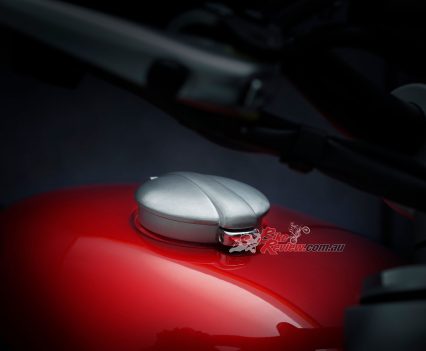 Details and finishes are harmonised across the bike, including brushed aluminium front and rear mudguards with new mounts, plus brushed aluminium side panel finishers and heel guards. Additional touches and details can be found in the new anodised headlamp mounts to compliment the painted headlamp bowl, classic Monza fuel cap and clear anodised aluminium swingarm.