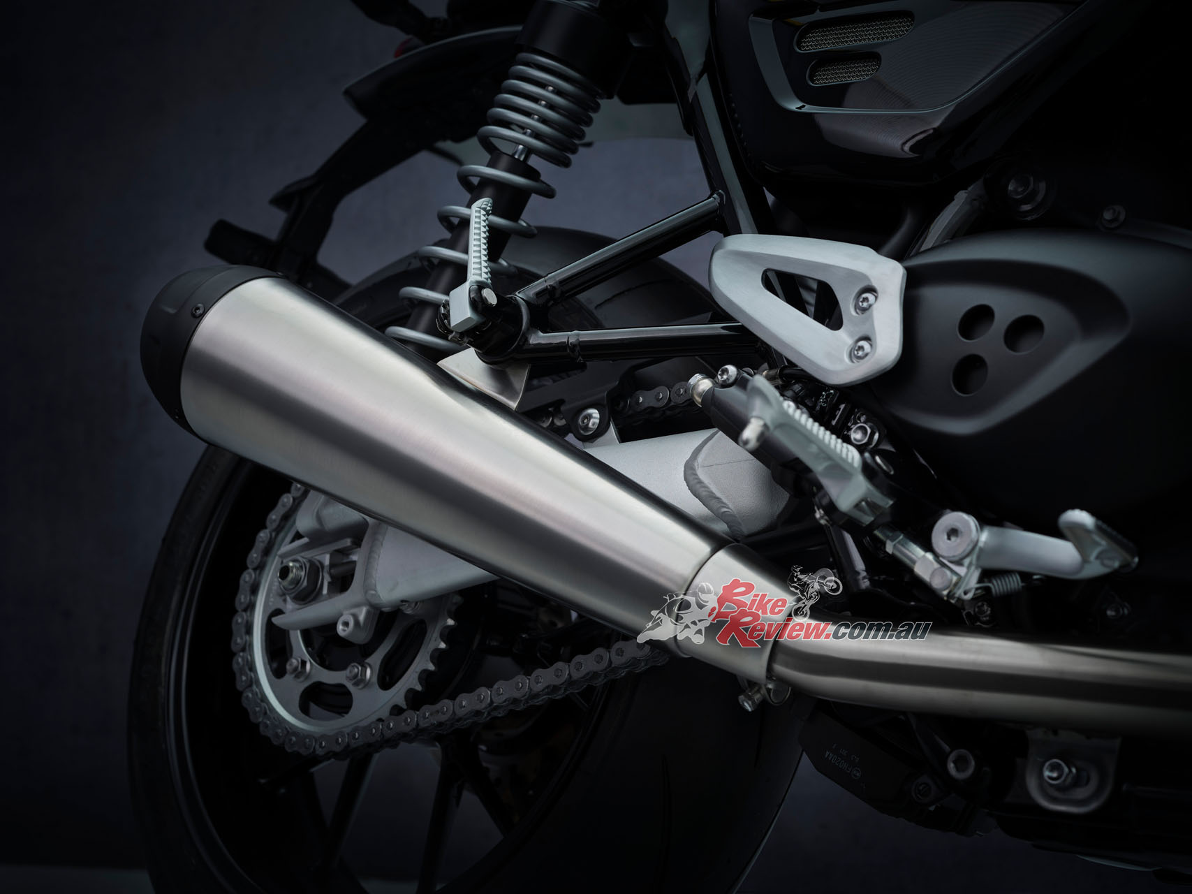 A two-into-two exhaust system sings the 1200cc parallel-twin’s distinctive song while looking great on the bike.
