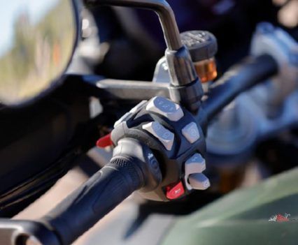 The incredible stopping power provided by the Brembo calipers is managed by the advanced Optimised Cornering ABS system fitted to all of the new models, which is supported by a sophisticated IMU (Inertial Measurement Unit), which continuously measures the motorcycle’s movement (pitch rate, yaw rate, roll rate, vertical acceleration, lateral acceleration, longitudinal acceleration) to calculate the lean angle of the bike and deliver the optimum level of ABS intervention. Magura HC-1 levers, adjustable for reach, deliver a progressive feel and further enhance rider comfort and control.