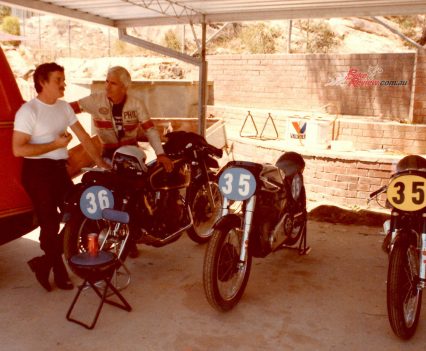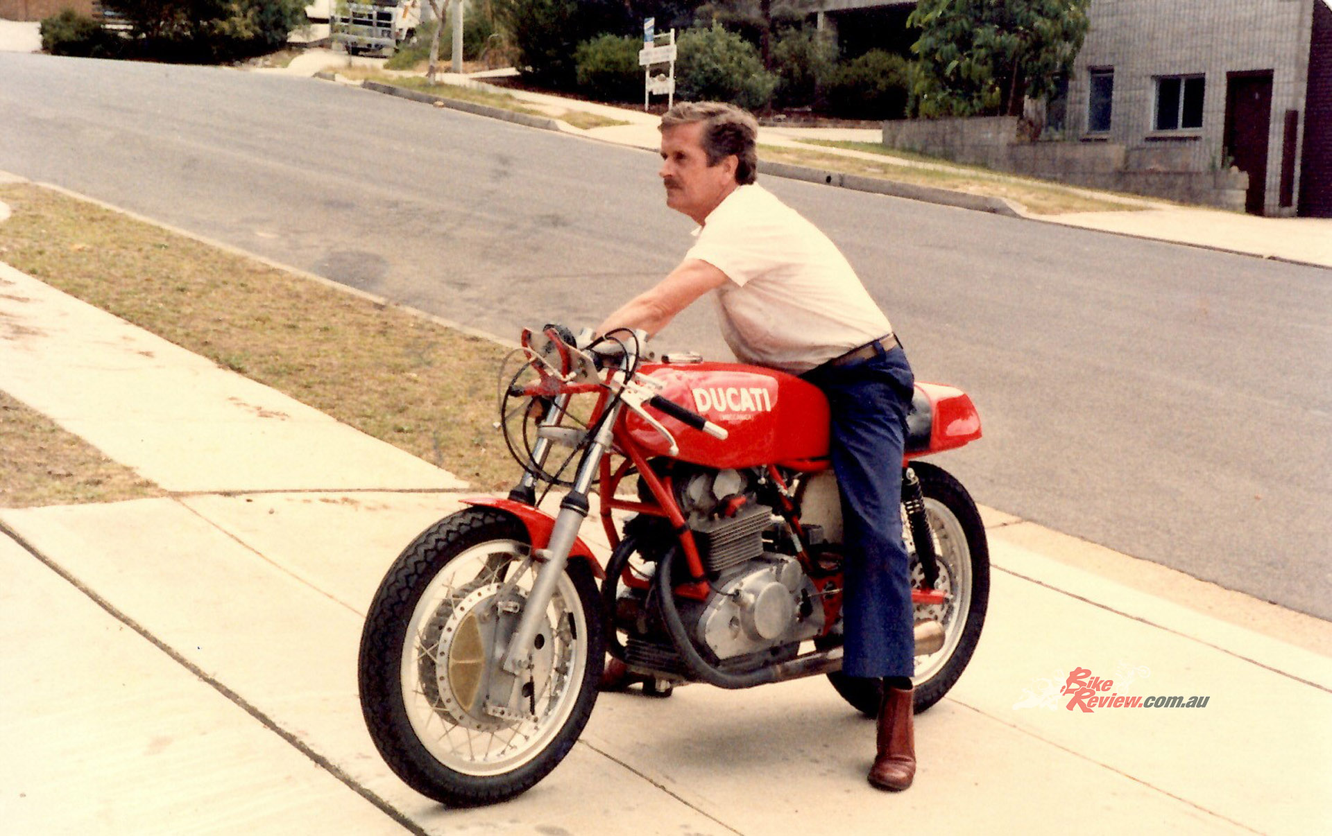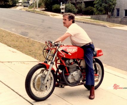 The Red Ducati that Peter is sitting on is still in mint condition as same as pictured and I have it hanging in my workshop on display. I bought the 500 and the 250 off him in the late 80’s they were both his personal bikes. Never been started since bought from Peter.