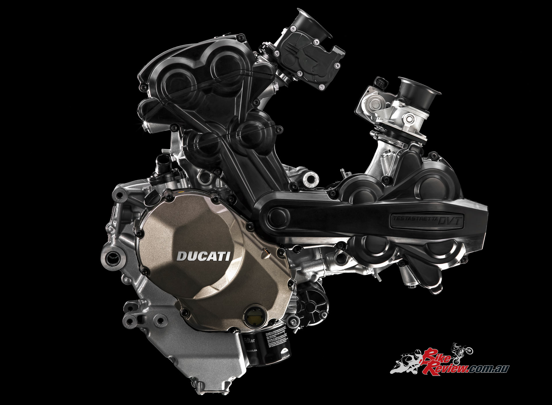 Engine: Liquid-cooled, Testastretta 11 DVT, L-Twin cylinder, four-valve per cylinder, Desmodromic, 1198.4cc, 106 x 67.9mm bore x stroke, 12.5:1 compression, Mitsubishi EFI, Mikuni elliptical throttle bodies with RbW, two-into-one-into-two lightweight exhaust with cat and lambda probes, DTC, DWC, riding modes, IMU