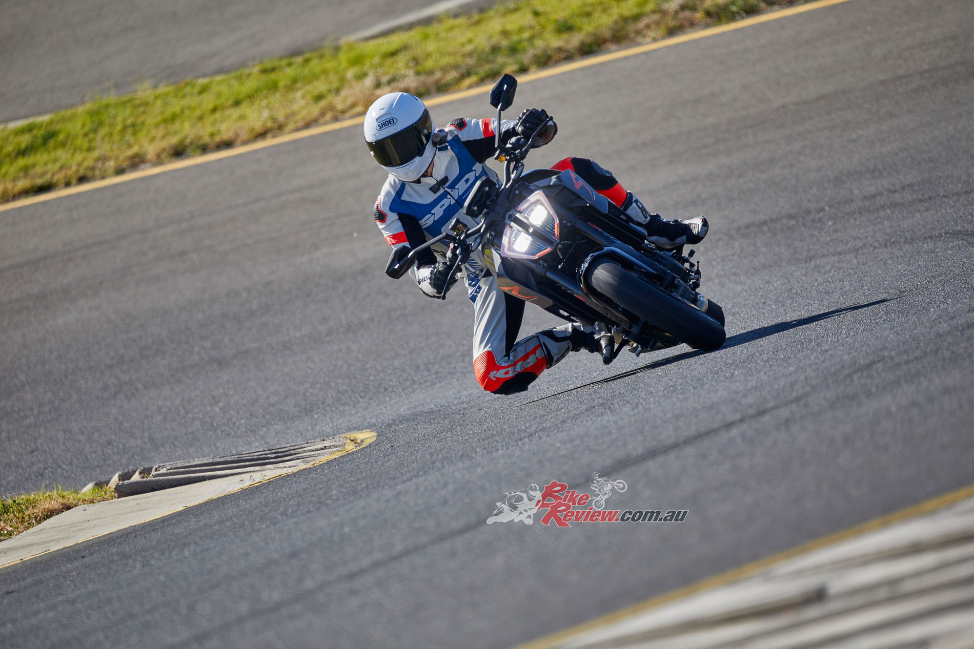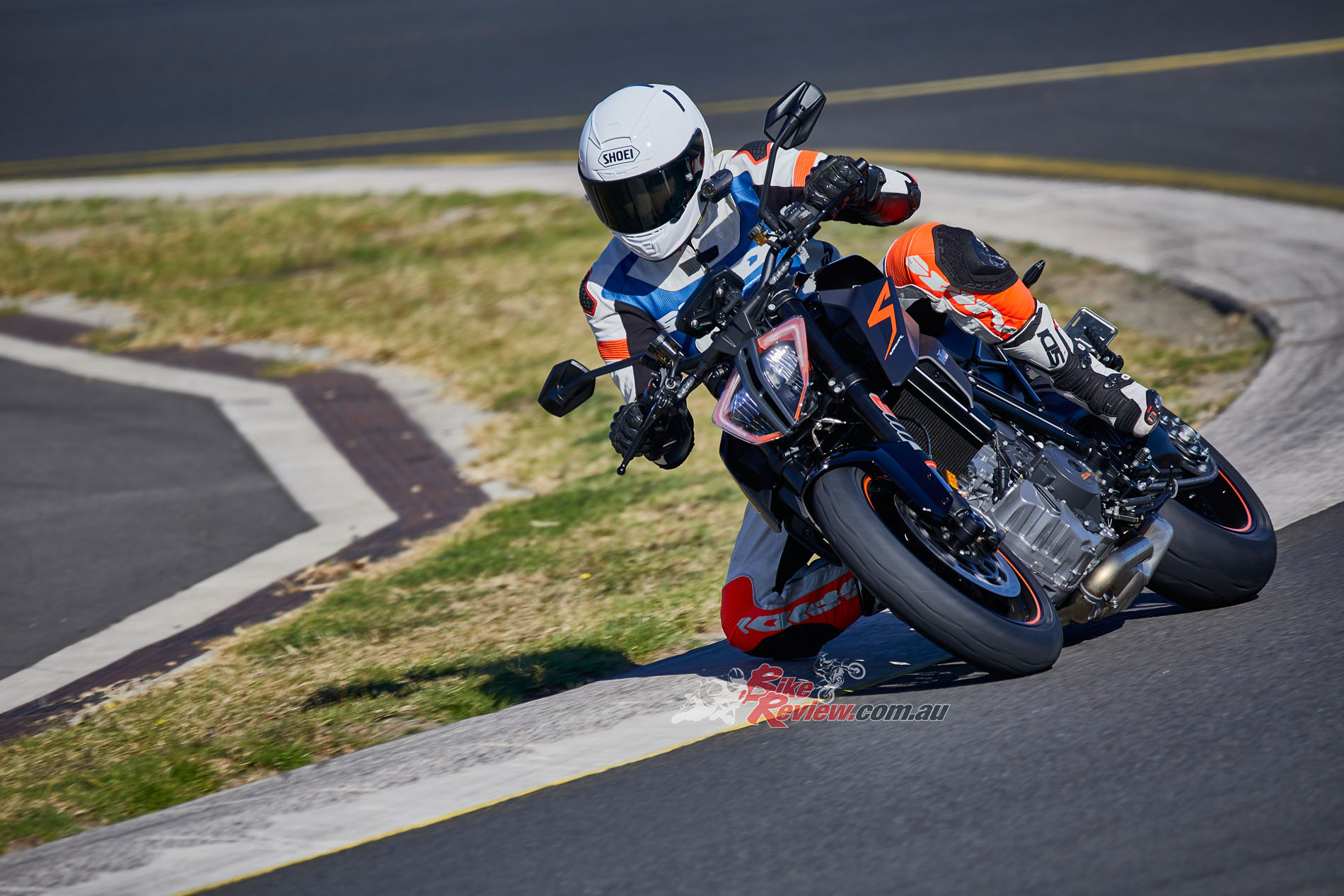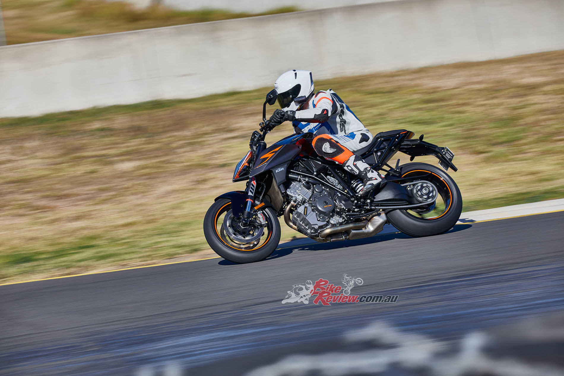 We take the new 2017 KTM 1290 Super Duke R for a spin around Sydney Motorsport Park at the Australian Press Launch of the 2017 Street range. The new 1290 R has more power and more torque thanks to a bunch of engine revisions including Titanium valves, more compression, redesigned intake funnels, intake resonators, clutch changes, new pistons, crankshaft, exhaust system and tuning.