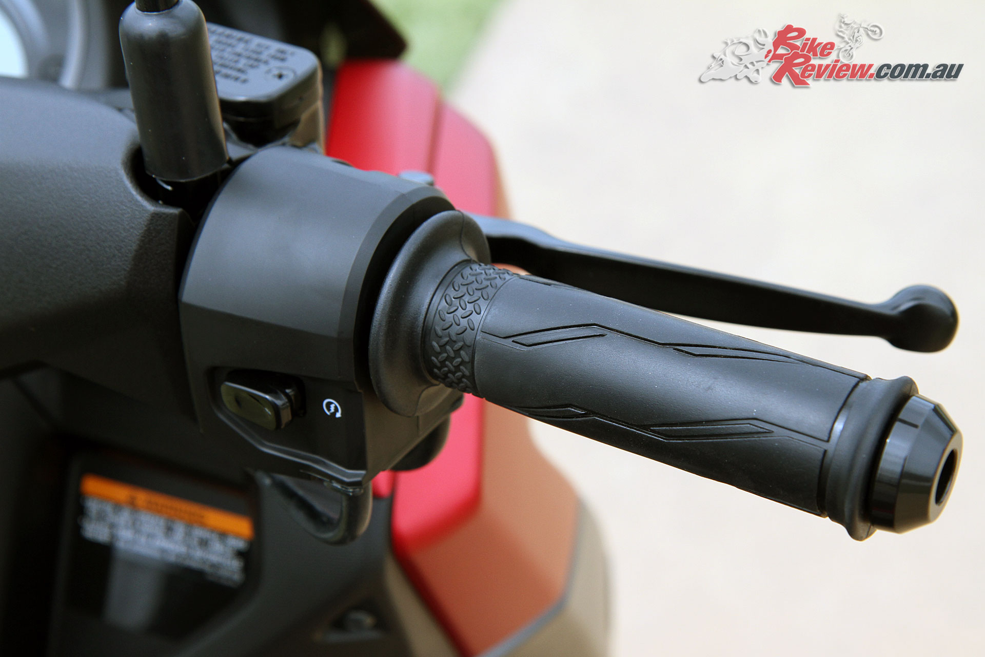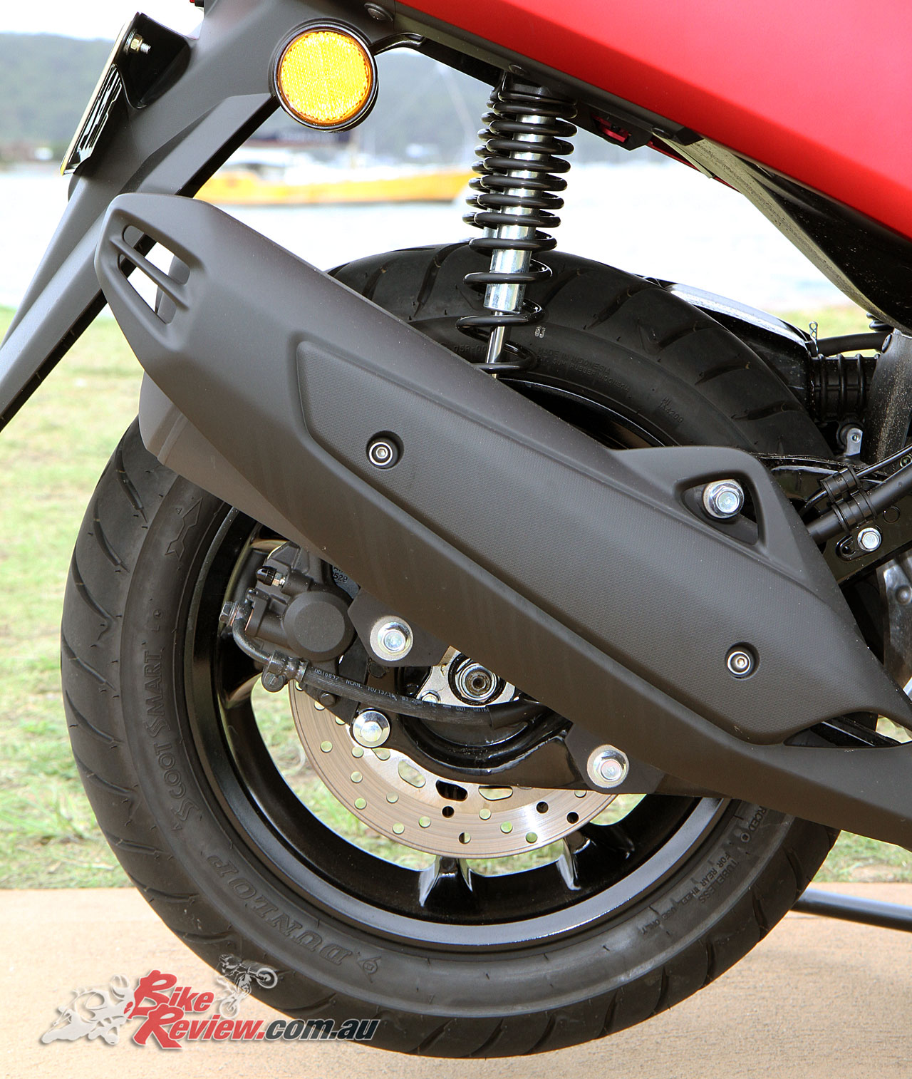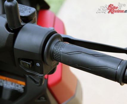 The lightweight cast alloy 13-inch wheels underline its sporty styling and premium specification and a wide section 110/70-13 front tyre and chunky 130/70-17 rear tyre.