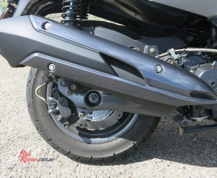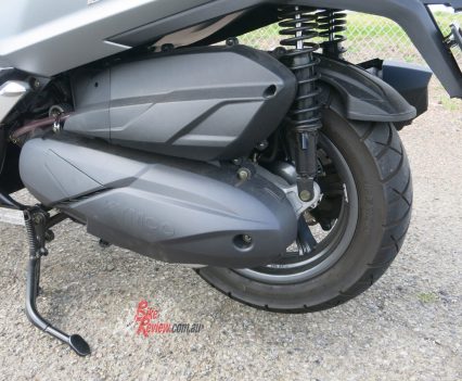Out of the CBD and into the outer suburbs, the Downtown 350i came to life and the 60 to 100 kay zones are where the CVT works so well extracting the most out of the 320cc single. The scoot cruises effortlessly but a twist of the wrist is all it takes to launch forward faster – passing is no issue at all and the engine turns over just under 6000rpm at 110km/h, so is not working hard.