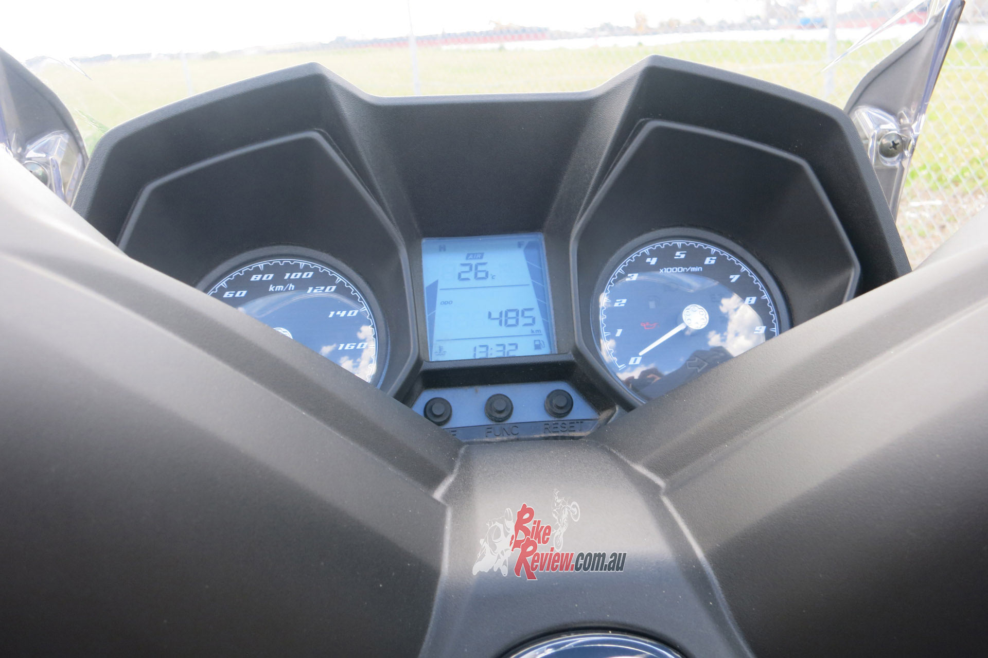 Vibes are there slightly, a little through the ‘bars and feet, but nothing out of the ordinary and the mirrors are completely clear and vibe free. The screen is not quite right for my height so I copped wind blast right in my eyeline. A screen 25mm taller or 25mm lower would sort the problem for me. In saying that, I was still really comfy on the freeway on the 350i and could happily tour on it. I rode it for four hours non-stop without any issues. The instruments are trick, with the speedo and tacho dials on either side of an LCD display that is multi-function but unfortunately sun glare does make it difficult to read. The blue LED backlighting is a nice touch though… Switches are all standard and decent quality. ‘Bar mounted control of the dash functions would be better than the small centrally located buttons.
