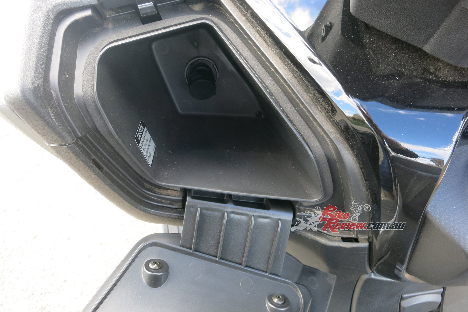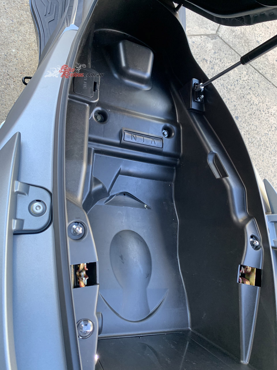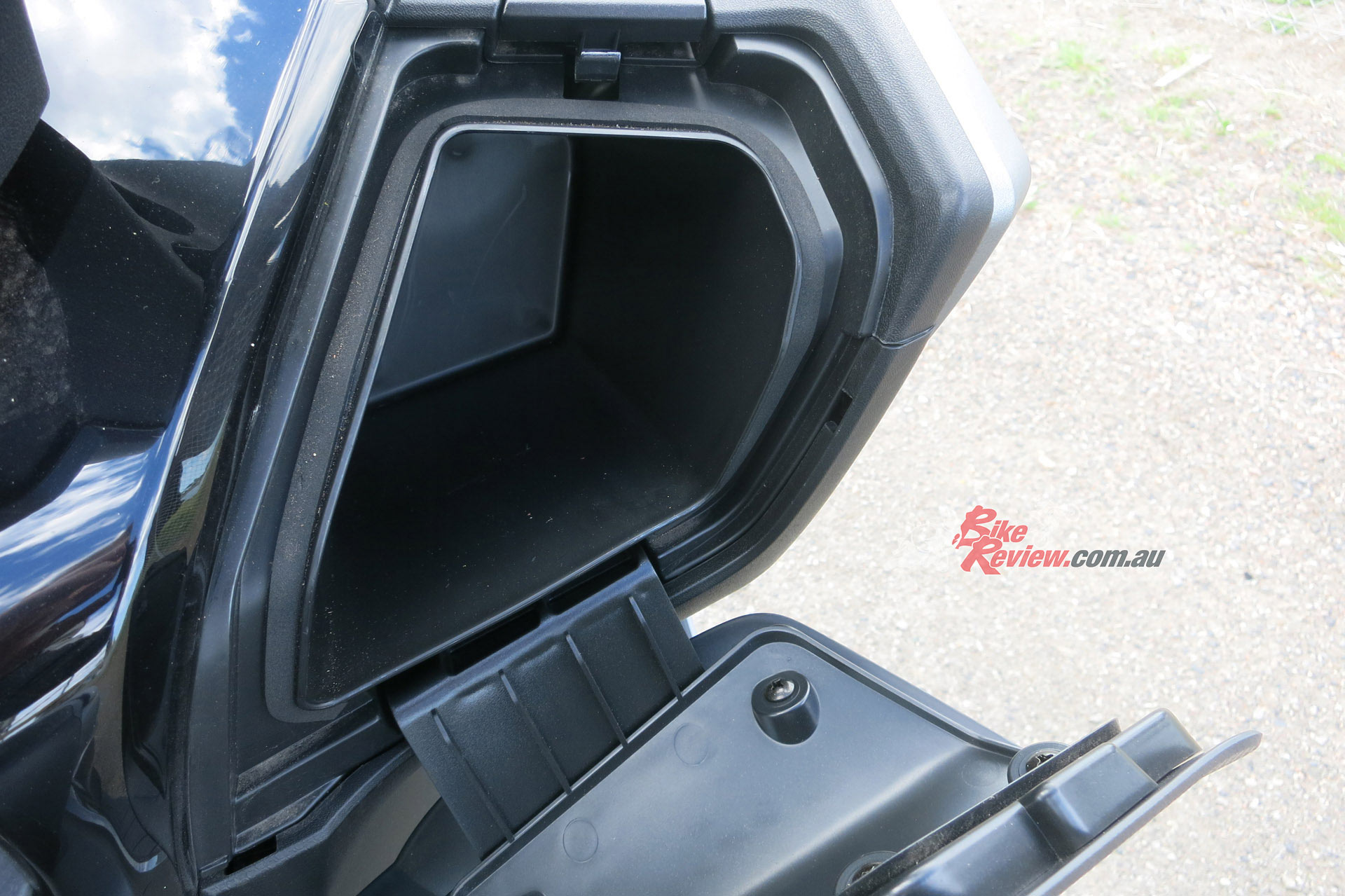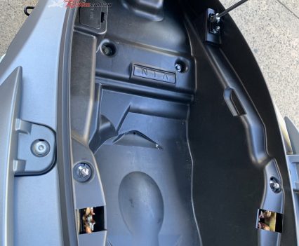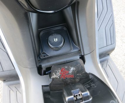 Fit and finish is good for the price point, storage is amble with enough space under the seat for a full face and a half face together, or a full face and jacket/groceries/beer for later! The two gloveboxes are deep and one has the 12V charge point. Another nice touch are the proper fold out pillion ‘pegs and larger grabrail as well as the large pillion seat.