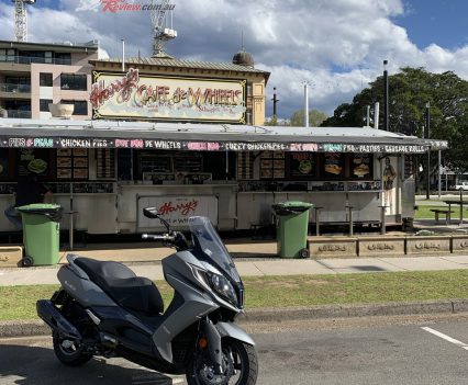 Lane filtering is easy, just as easy as it is on a lightweight smaller scooter. The 350i is long and carries the weight low so it is well balanced and with a smooth throttle is easy to work through stopped or tight traffic. Feet up full lock U-turns are very easy to do and parking is a cinch. At no stage in town did I feel the need to put my feet down at low speed or to keep the scoot balanced with throttle and rear brake, the way the heavier Maxi scooters like. The 350i would be a comfortable and confidence-inspiring upgrade for a newer rider coming from a smaller capacity two-wheeler, not just an experienced rider.