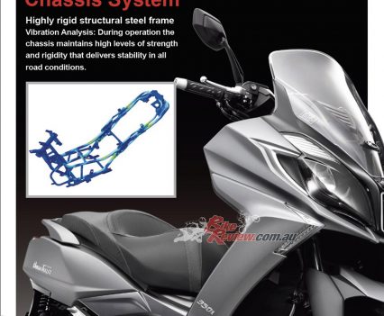 Wheels & Tyres: 120/80 – 14in (f), 150/70 – 13in (r).