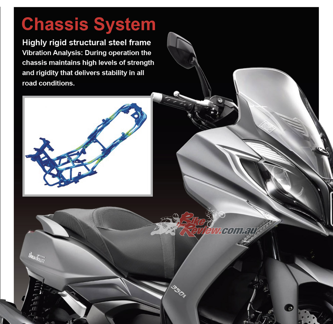 Designed by Italian guru Massimo Zaniboni the Downtown 350i certainly looks the part… A 15in front wheel and 14in rear would be nice though.