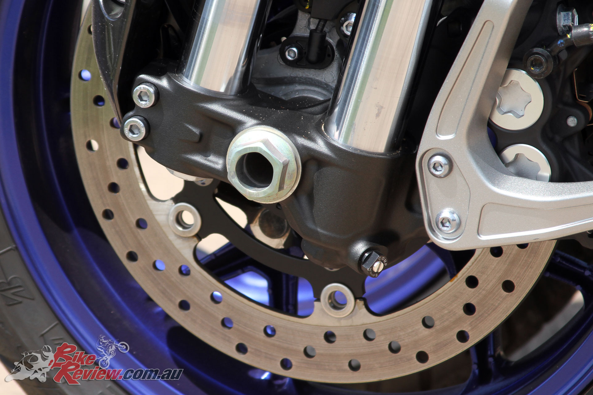 Brakes: ABS : Front dual 298mm rotors with four pot radially mounted calipers, rear single 282mm rear rotor with a single pot caliper.