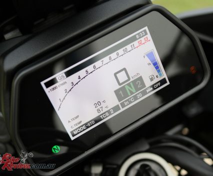 On paper it’s a well spec’d machine ready to take it to the standard Tracer 900, but the price is also $18,199 RRP + ORC, which adds a further $1200 premium on to the 2018 GT premium of $1500 for a total of $2700. Of course the panniers, mounts, heated grips, etc all quickly add up to that figure, but it does move the Tracer 900 GT into a different stratosphere.