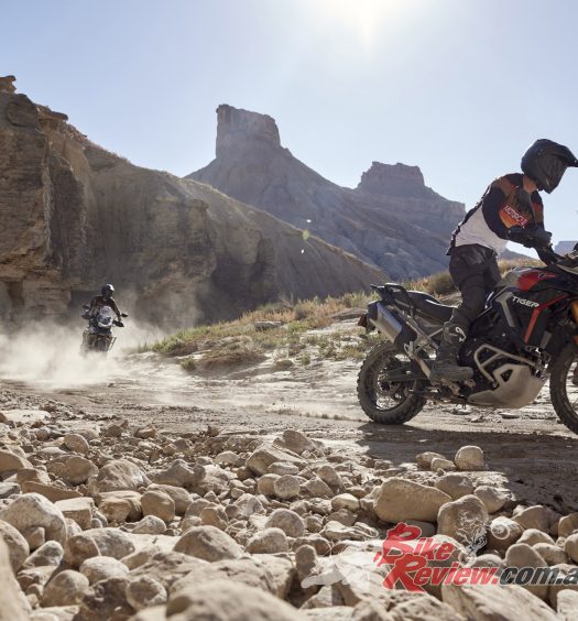 Engine: Liquid-cooled, crossplane triple, 12-valve four stroke, 78 x 59.1mm bore x stroke, 847cc, 11.5:1 compression, fuel injected with selectable three engine modes, traction control three levels