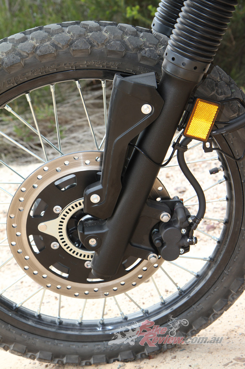 Brakes: Single 300 mm petal disc, dual piston, ABS. Single 240mm petal disc, dual-piston.