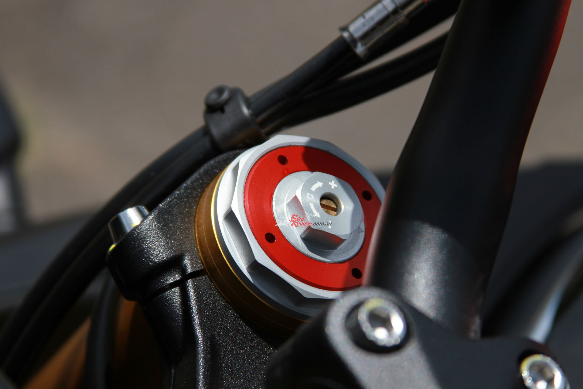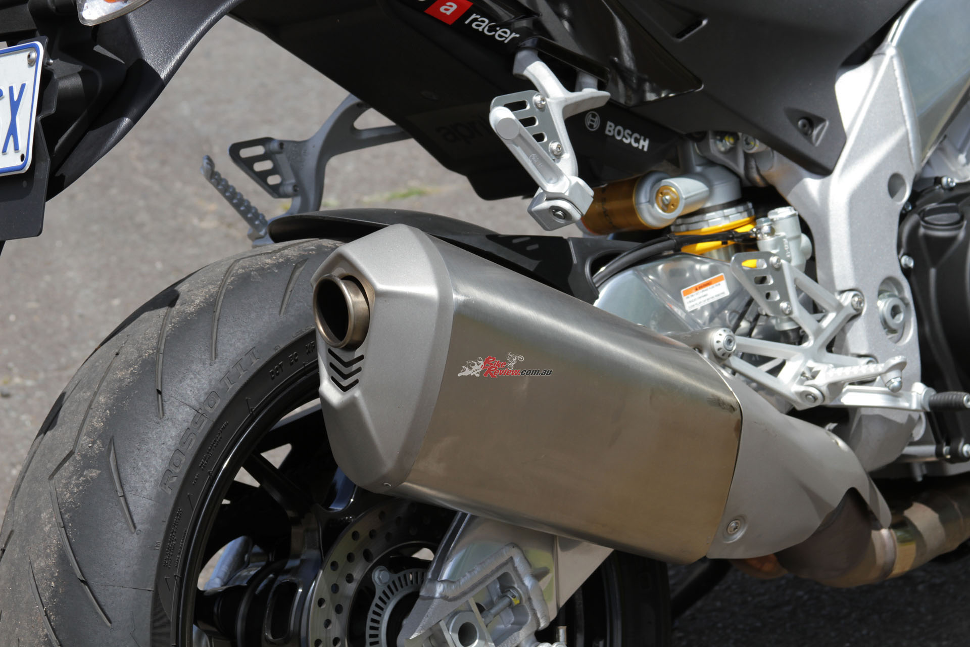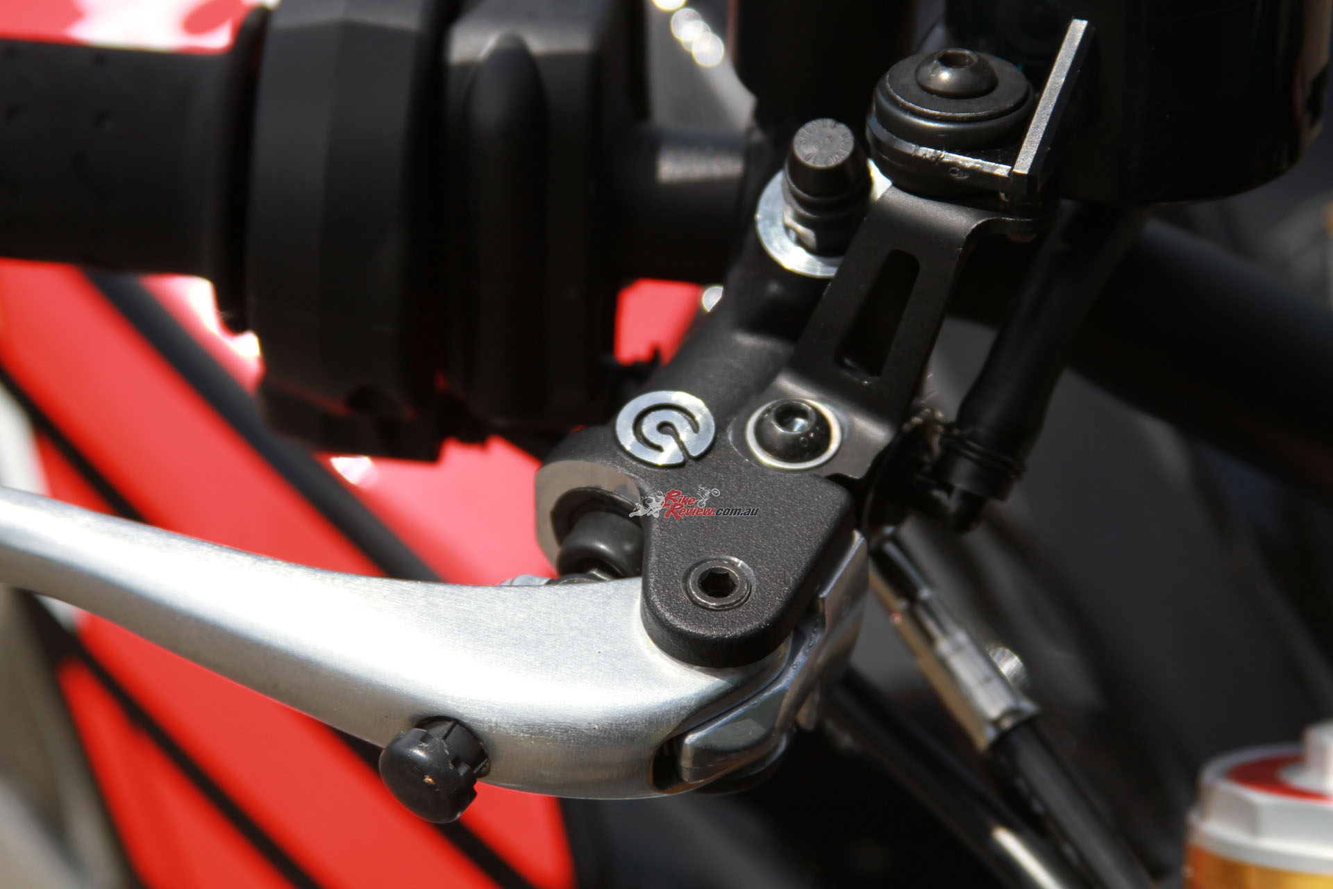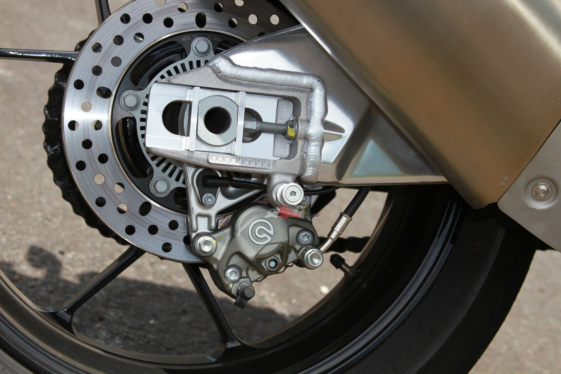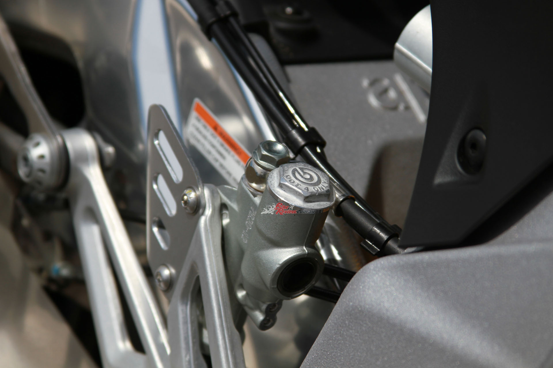 BRAKES: Bosch ABS with RLM, Dual 320mm rotors, four-piston radial-Monobloc Brembo calipers, Brembo radial master-cylinder, single 220mm rear rotor, two-piston Brembo caliper