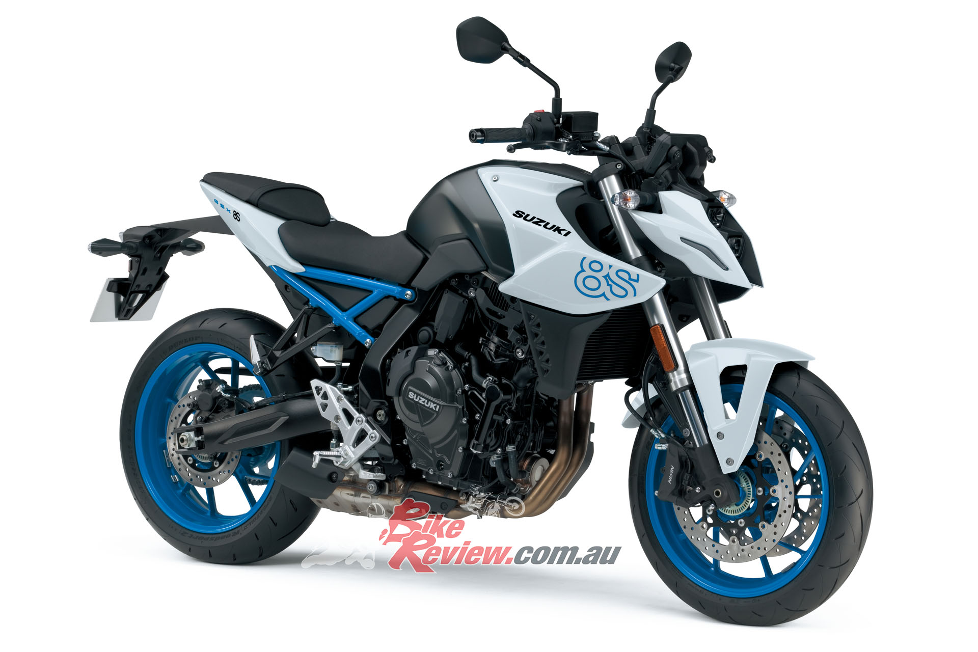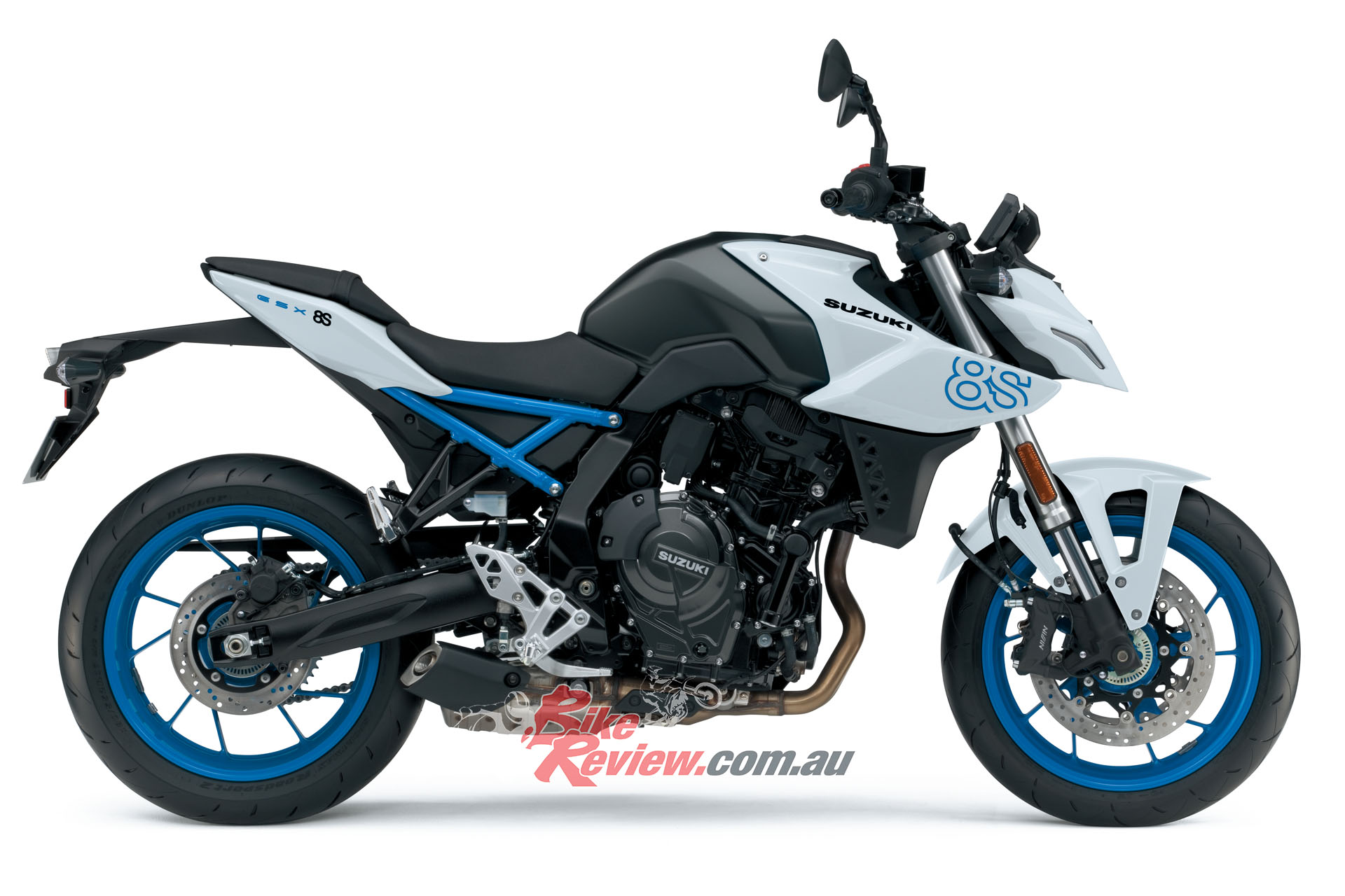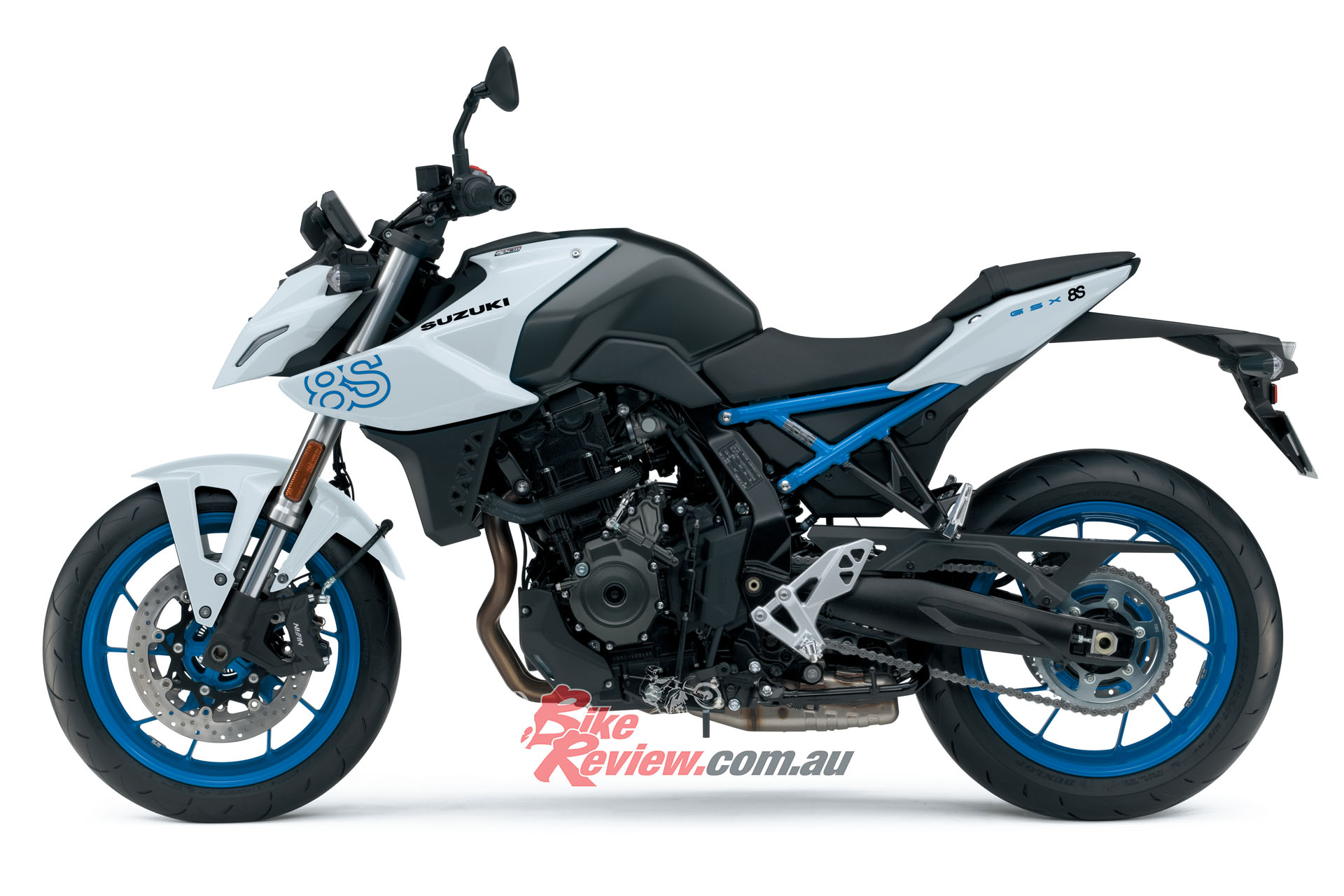 There are three liveries: Pearl Cosmic Blue and Pearl Tech White, both created exclusively for the GSX-8S, and Metallic Matt Black No.2/Glass Sparkle Black.