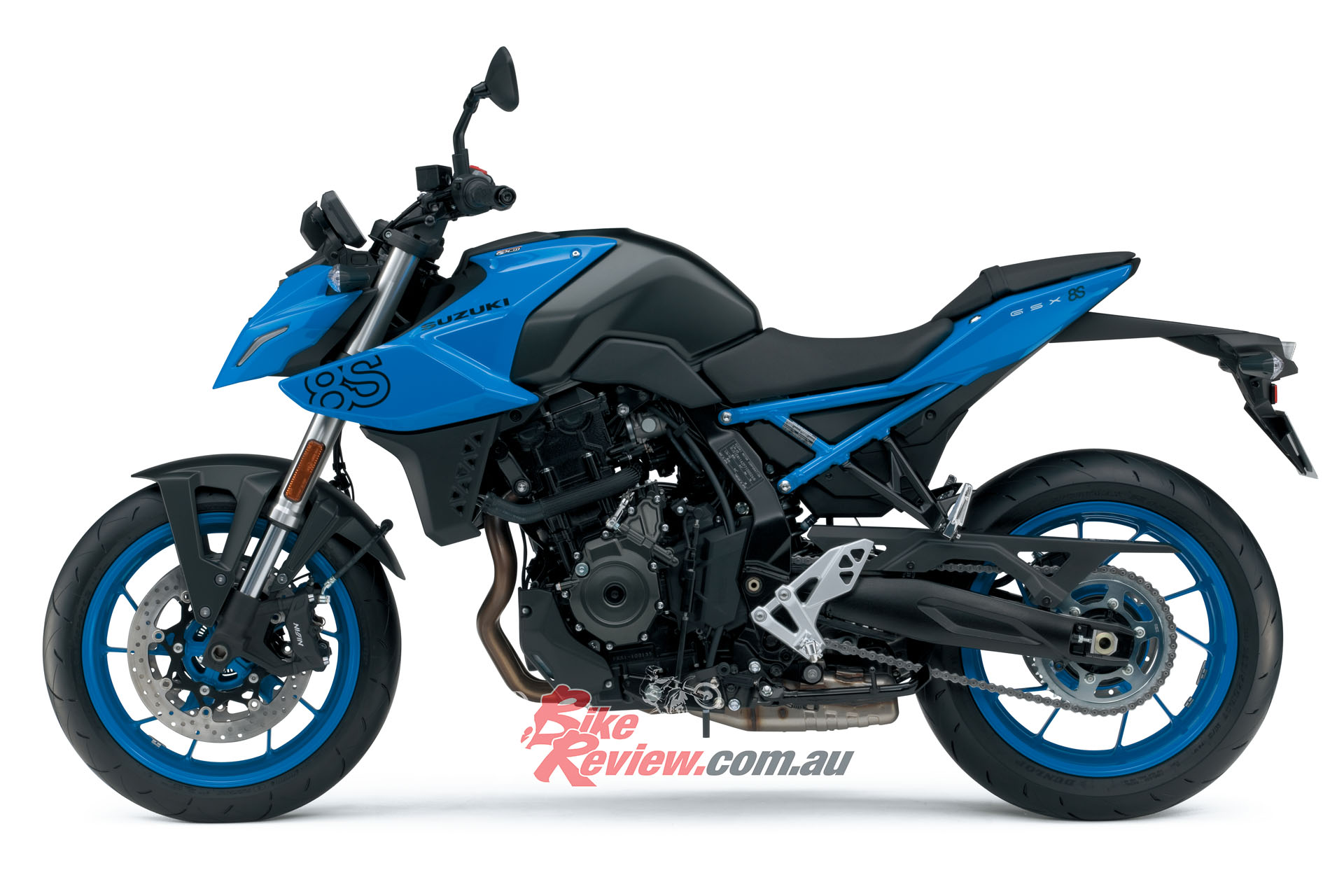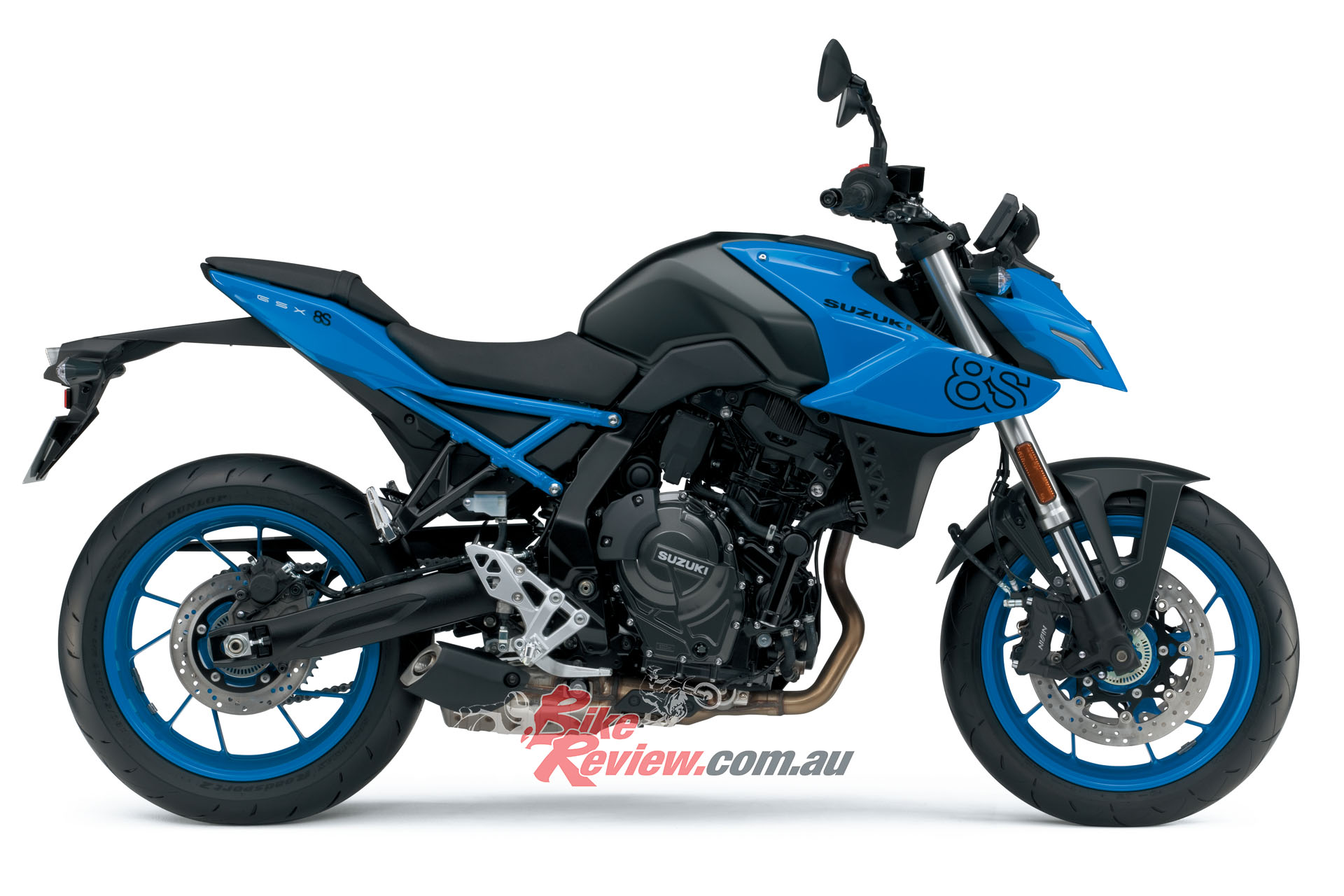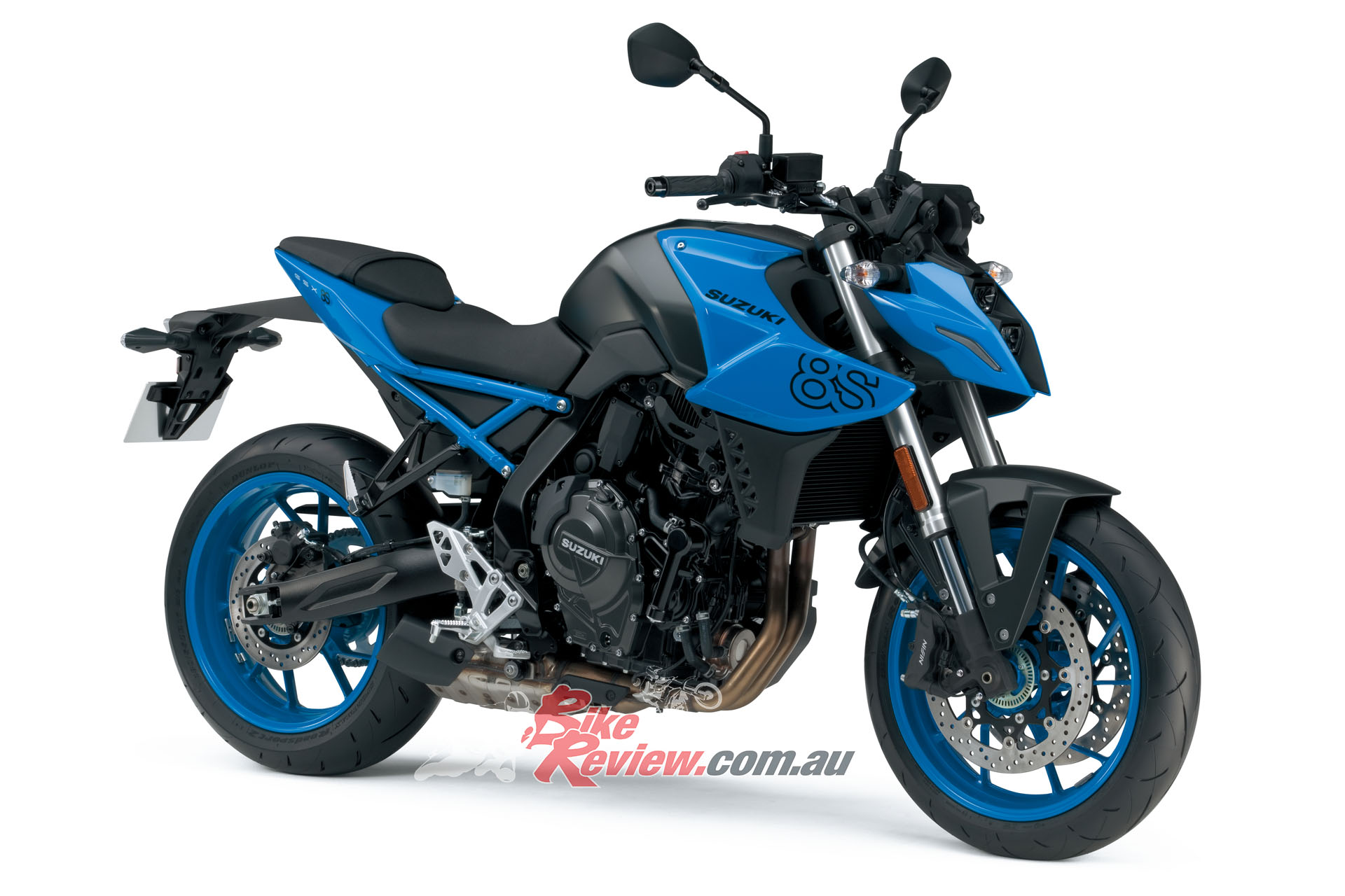 There are three liveries: Pearl Cosmic Blue and Pearl Tech White, both created exclusively for the GSX-8S, and Metallic Matt Black No.2/Glass Sparkle Black.