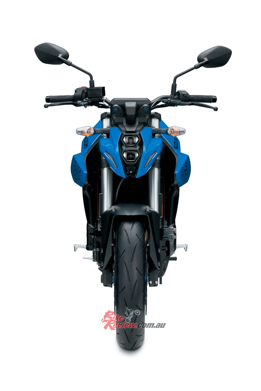 The 14-litre fuel tank features a stunning slim design unique to the GSX-8S, and the electronic equipment includes a five-inch TFT multi-function dash, all-LED lighting – including vertically stacked headlights – and distinctively styled LED daytime running lights.
