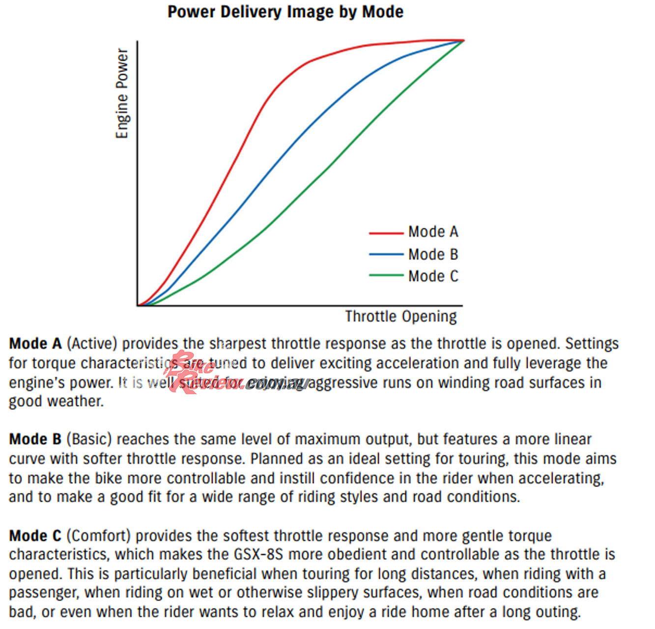- Suzuki Drive Mode Selector (SDMS) better supports the rider in matching performance to the conditions of the riding scene, road conditions, or preferred riding style.