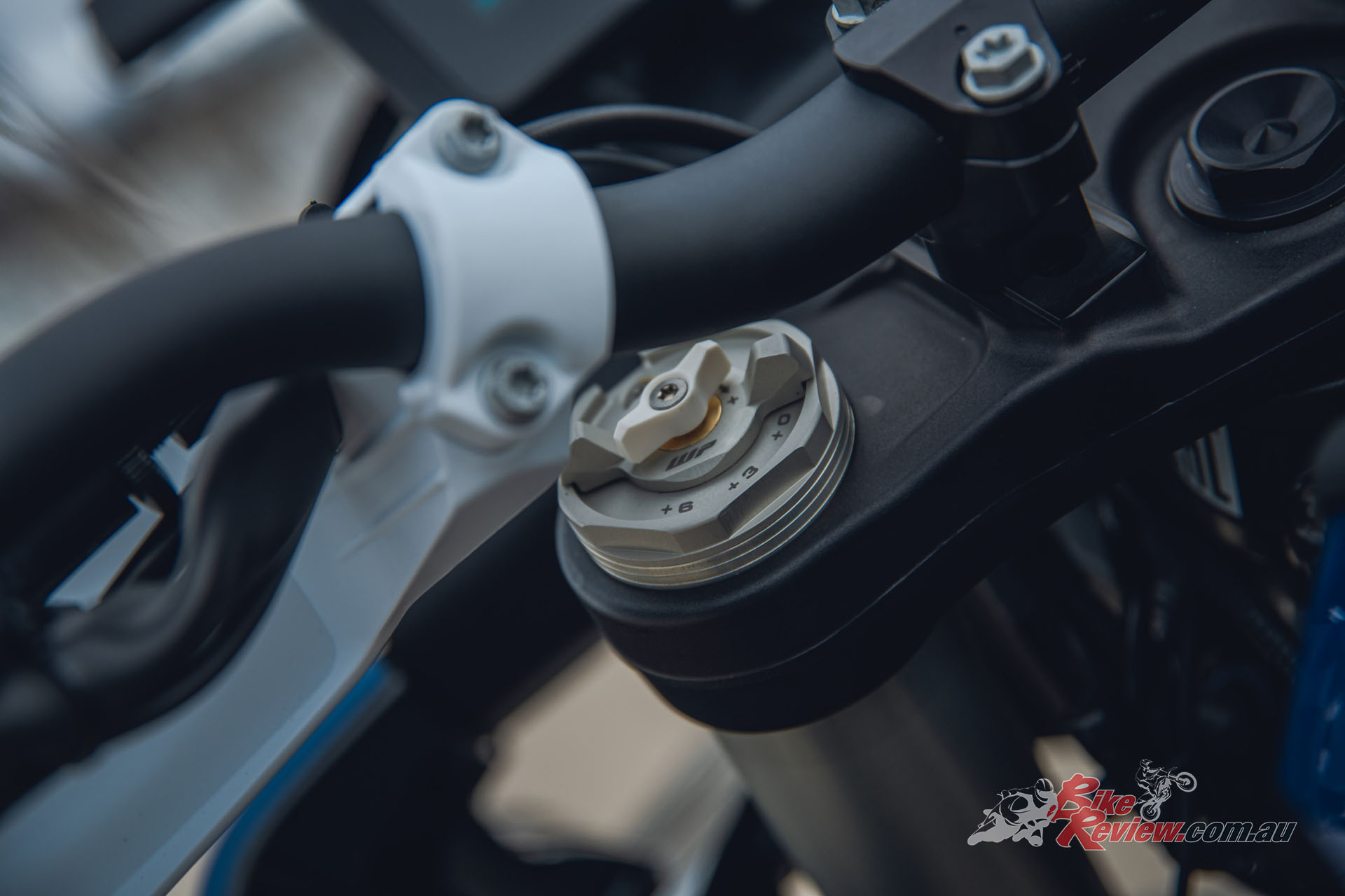 In Offroad mode the throttle is given a gentle, dirt-friendly setting and slip is fixed on level four. In Explorer mode, however, you can have a faster response with that Rally throttle and reduce slip to 1 or opt for a maximum of 9. The traction control can be completely removed in all modes, even on the move, but automatically reverts to ‘on’ when the bike’s ignition is turned back on.