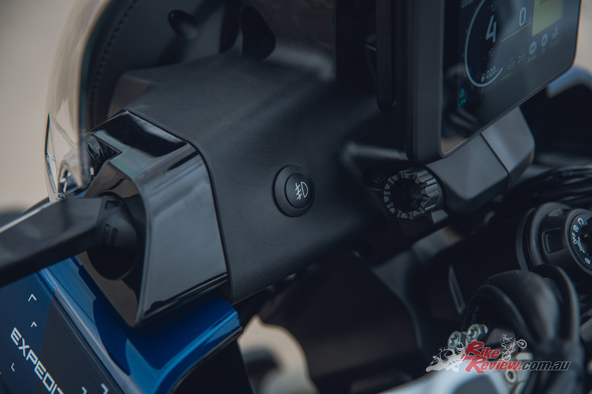 All the Expedition’s riding modes are clearly shown and understood on the colour 5in TFT dash, and it’s relatively simple to scroll through the options and even turn the TC off and on again. Incidentally, the cruise control can’t be activated if the TC is removed.