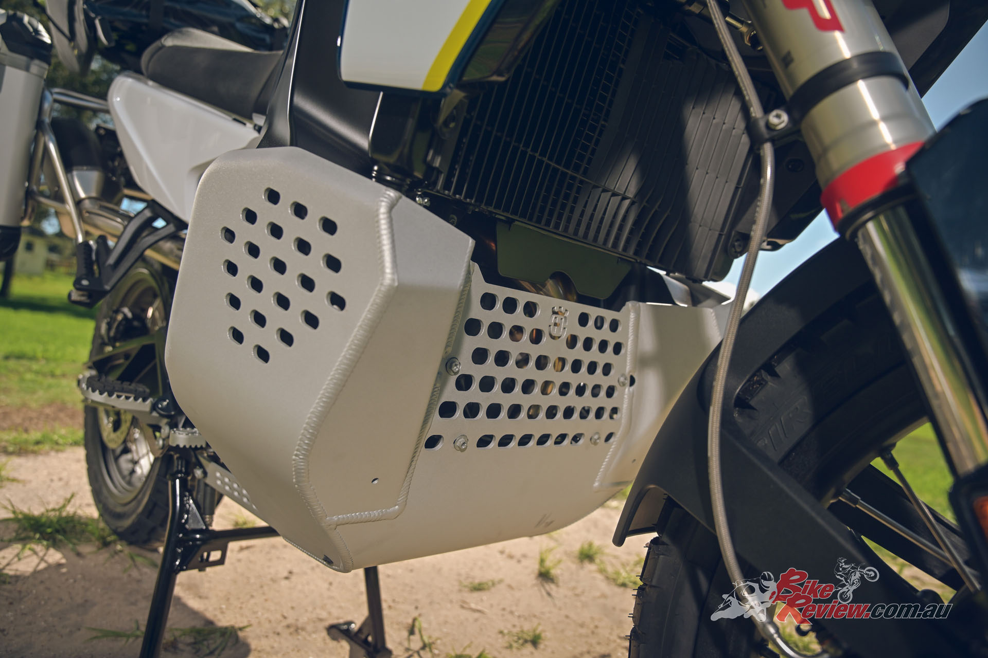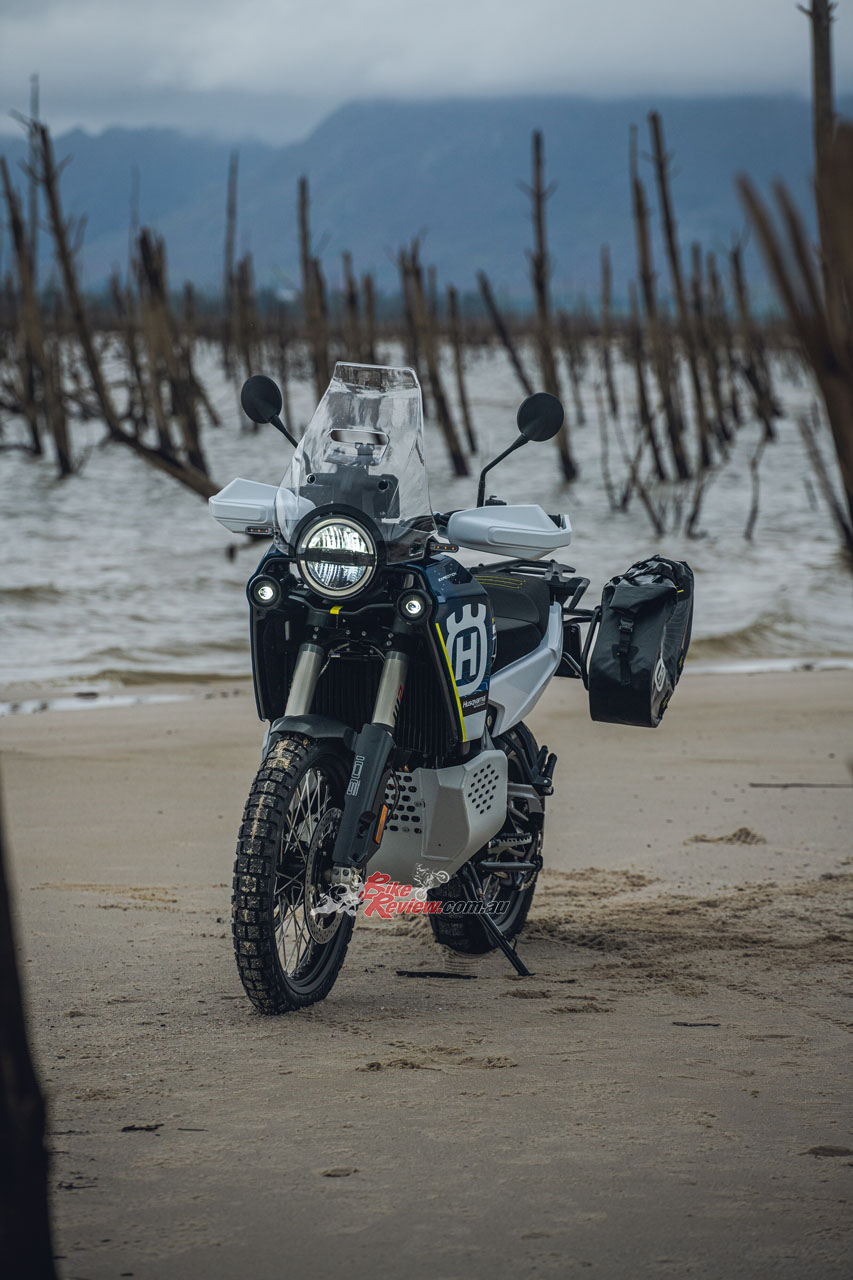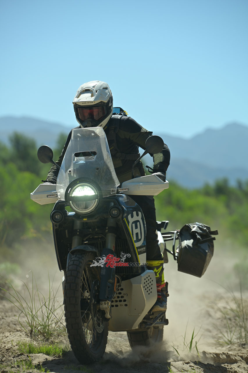 However, there are limitations to the Husqvarna’s abilities, and a few moments of off-road instability when riding rough and potholed tracks at 110km/h show themselves. These brief but alarming head shakes may have been in part due to that softness of the forks in the first part of their stroke. It may also be a result of the sheer loaded-up weight of the bike. With the heavy-duty bash plate, rack and bags, the Expedition’s weight is a claimed 214.5kg, up 10kg on the Norden 901, 229kg with fuel.