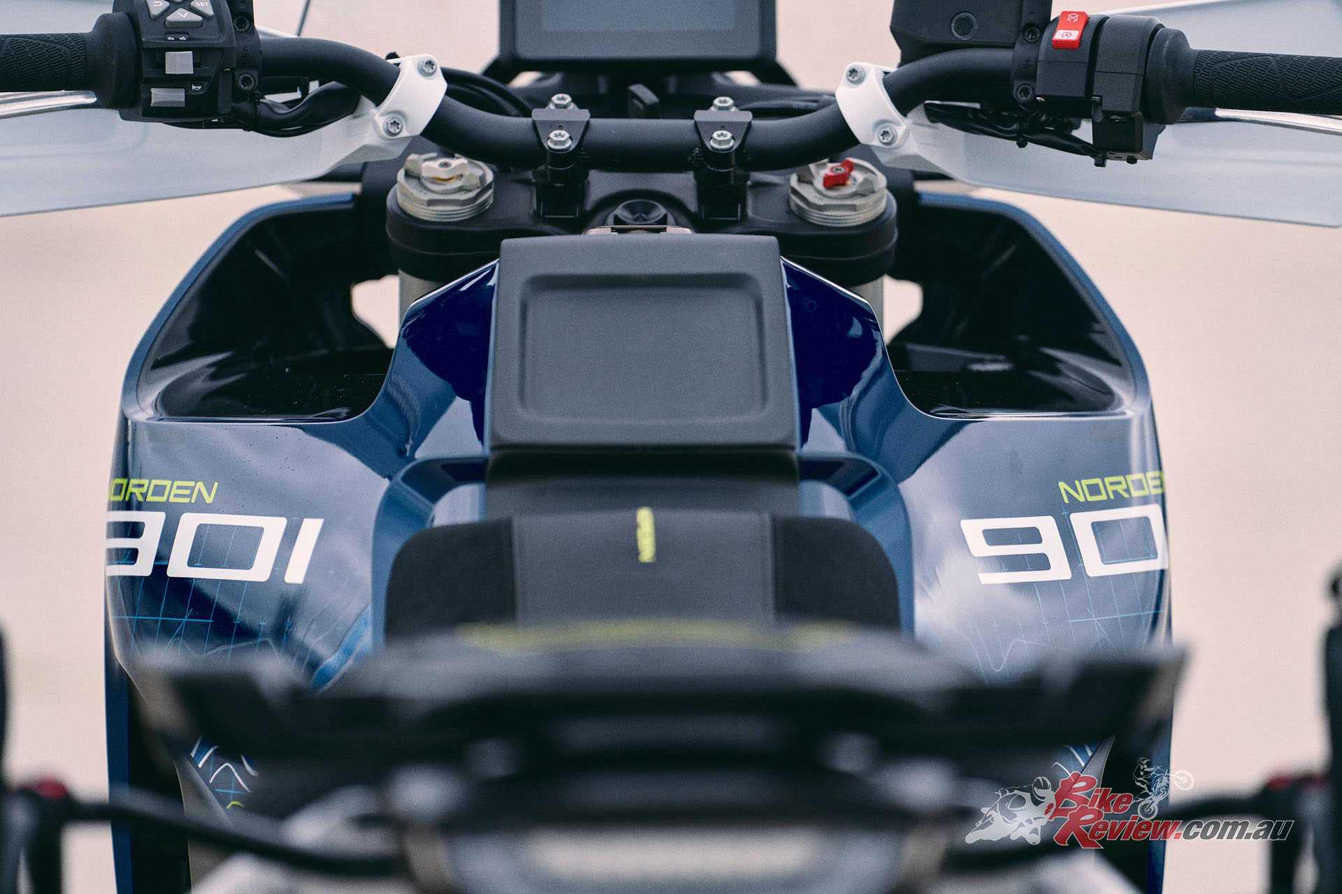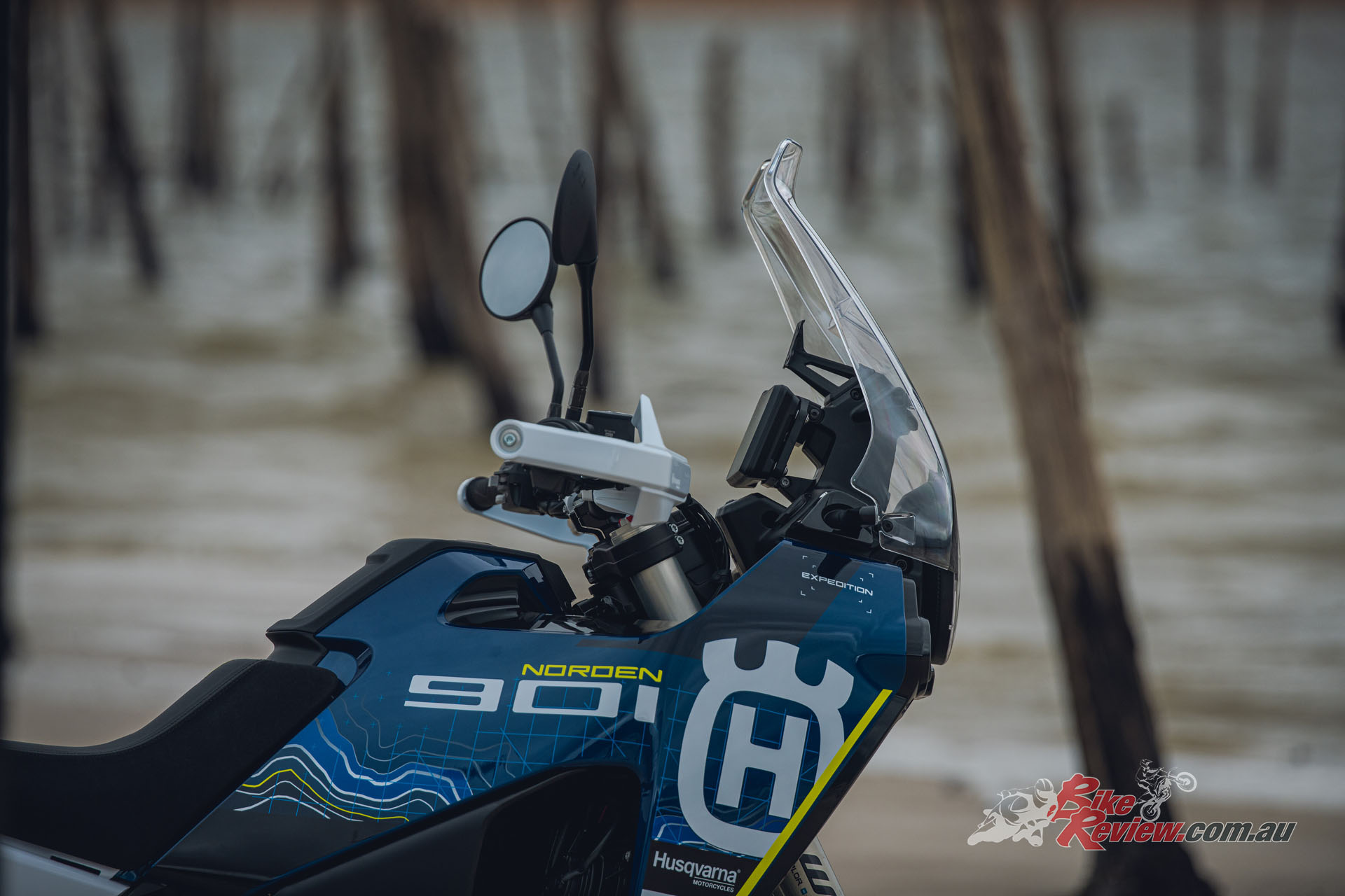 Although the Expedition shares the taller, longer-travel suspension of the 890 R, its internal spec differs from the KTM in terms of springs, shims and settings. The new Norden might look as full of the same gnarly dirt intent as the 890 R but is in fact a little more compliant and easier to live with.
