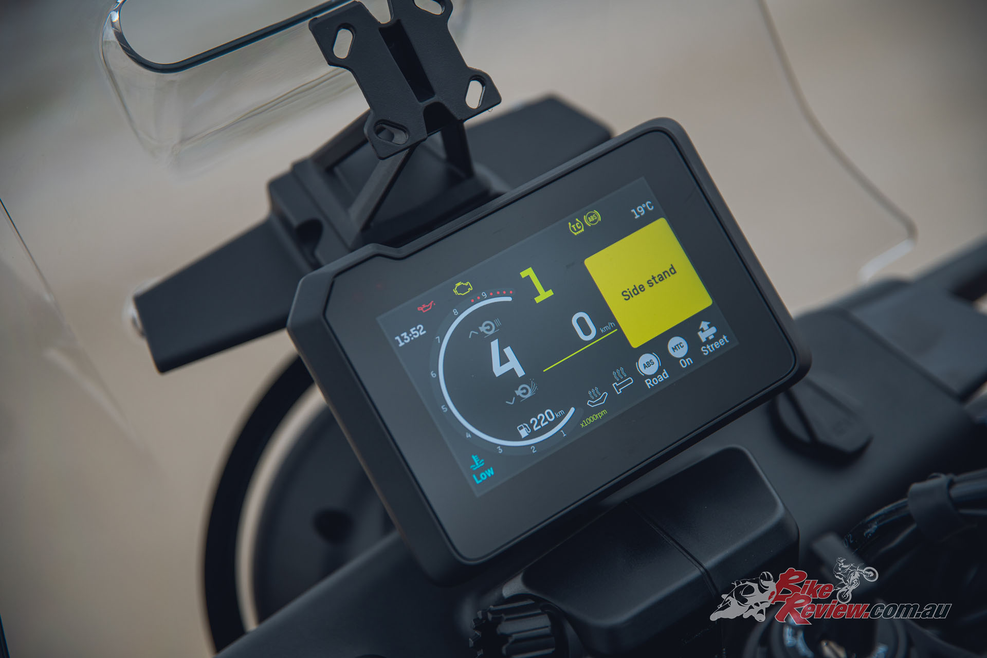 Instruments: 5in full-colour TFT dash, Standard 4 rider modes, Bosch cornering ABS and cornering traction control.