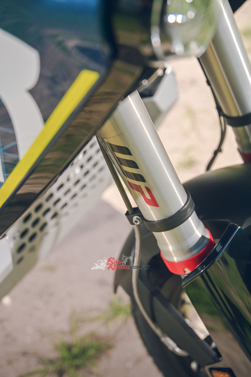 On harder, more technical terrain, with the rider standing up but leaning back to take weight off the front, the Expedition’s front end is faultless and takes all the punishment sent its way. But if I was planning a trip where I’d be taking on some high-speed gravel trails, I’d look to set-up the fully-adjustable quality suspension to match my riding and style.