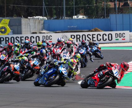 While the two Yamaha’s run away win the championship lead, third spot on the championship is really anyone’s for the taking. Nicolo Bulega current sits in third spot, 84 points behind Baldassarri and just four points ahead of Stefano Manzi.