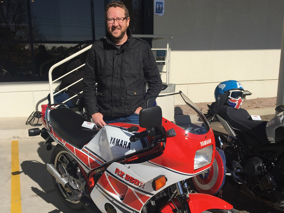 Just as I got over the YZs and had my picture taken with them by an amused Heather, I turned my now giant grinning face to the left and began drooling over an RZ350 that really took me back to my youth when I owned a mint RZ250FN as a 16-year-old. I used to ride it to school!