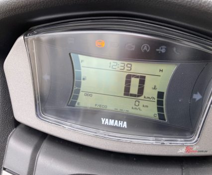 Something that has really impressed me about the NMAX is the speed and power. The revised Blue Core 155cc VVT four-valve motor is super punchy now that it has more compression and bigger inlet valves than the previous generation. It really goes well for it’s size and with my 100kg on will easily sit on 110km/h on the highways. In fact, I rode it from Gosford, NSW, to Sydney, via the M1 Motorway and aside from one very long hill, where speed dropped to 105km/h briefly, it happily sat on 110km/h all the way (50-plus km at 110km/h) and I was comfy and actually pretty warm and dry considering it was early morning and drizzling rain. For a 150 four-stroke to do that, it’s pretty impressive…